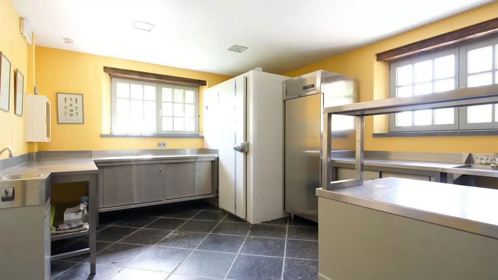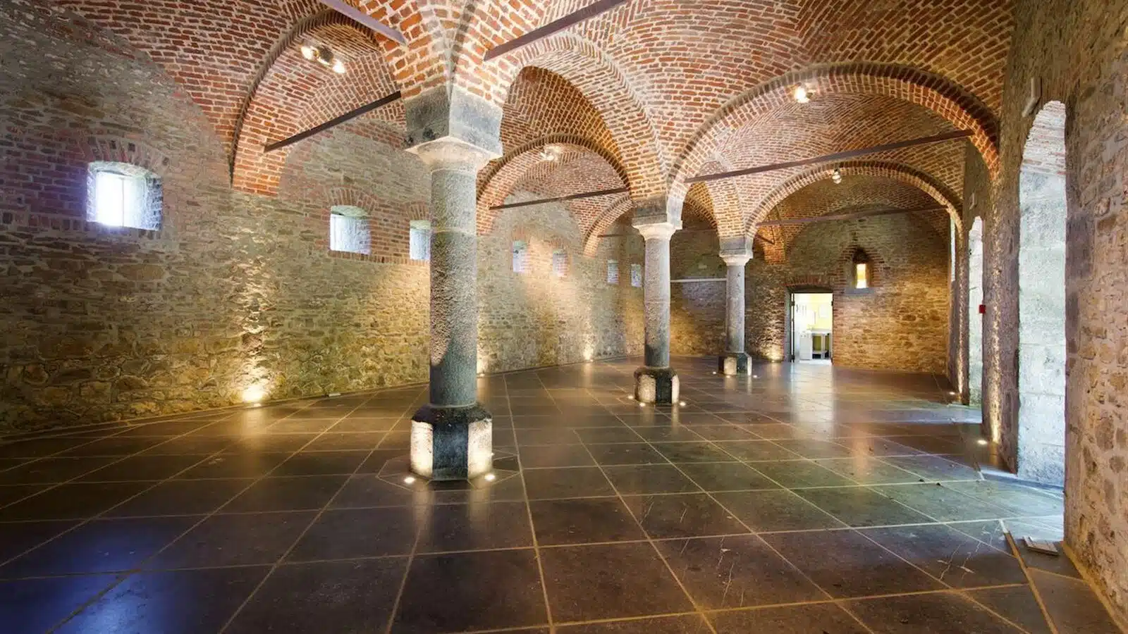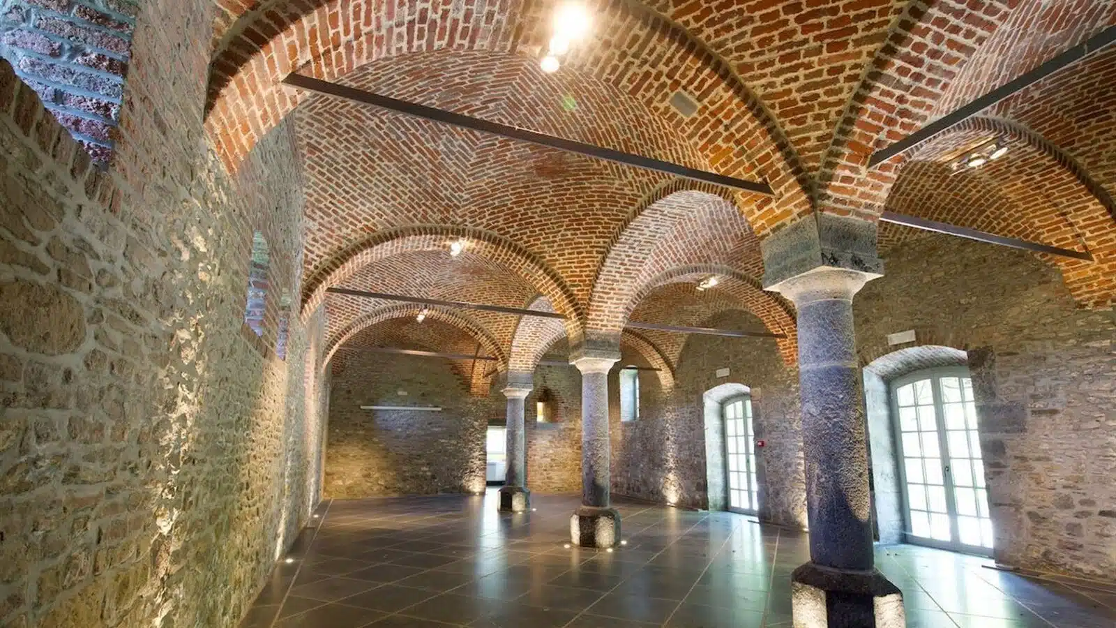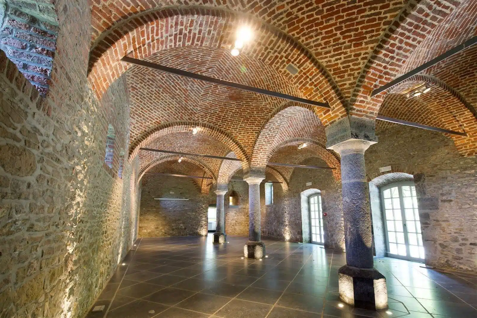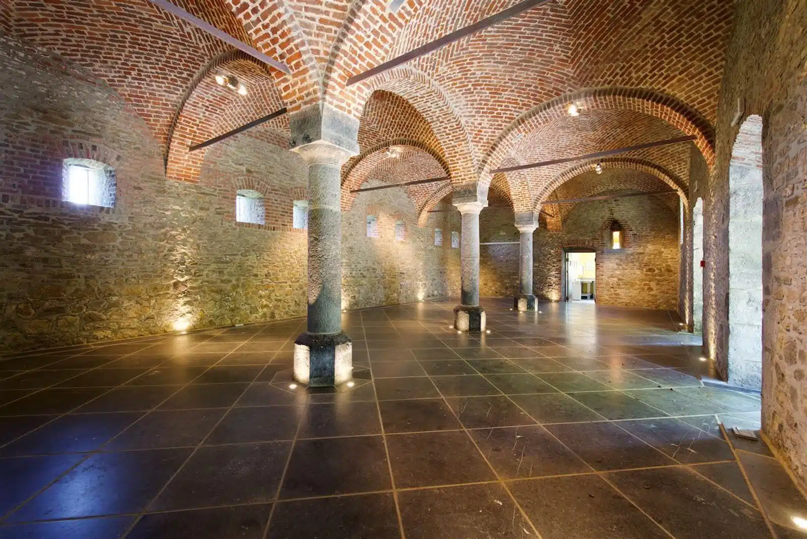 La partie réception ou salle des moines, établie dans l'aile Est sur env 320 m² est composée de superbes salles avec voûtes, un bar et une cuisine professionnelle.