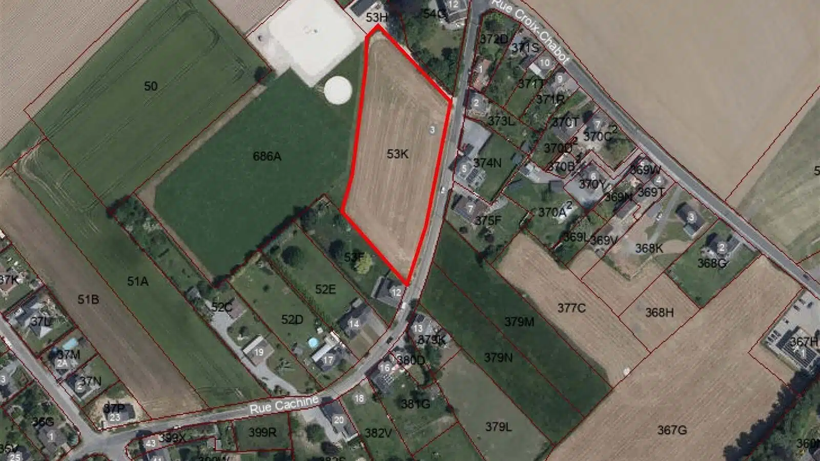 En l’état actuel et vu sa forme, le terrain pourrait être propice à l’obtention d'un permis d’urbanisation pour un ensemble de 5 parcelles de +/- 20 m de façade.