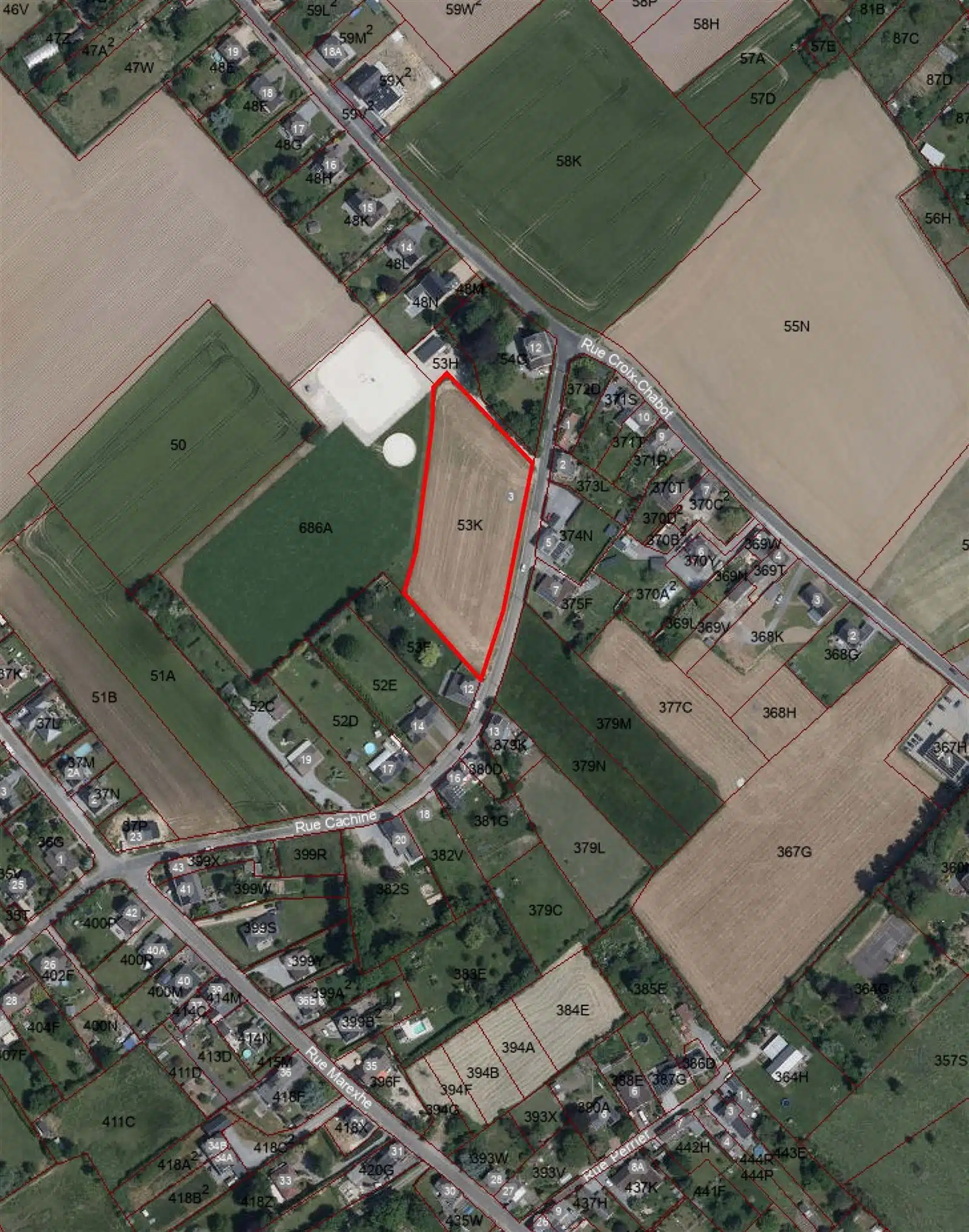 En l’état actuel et vu sa forme, le terrain pourrait être propice à l’obtention d'un permis d’urbanisation pour un ensemble de 5 parcelles de +/- 20 m de façade.