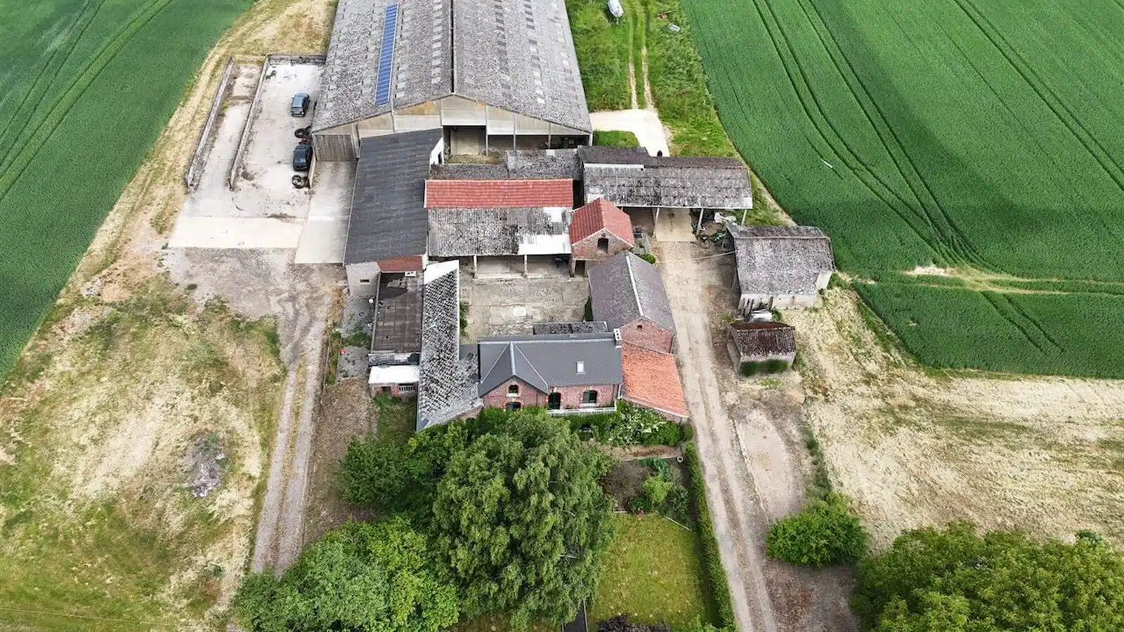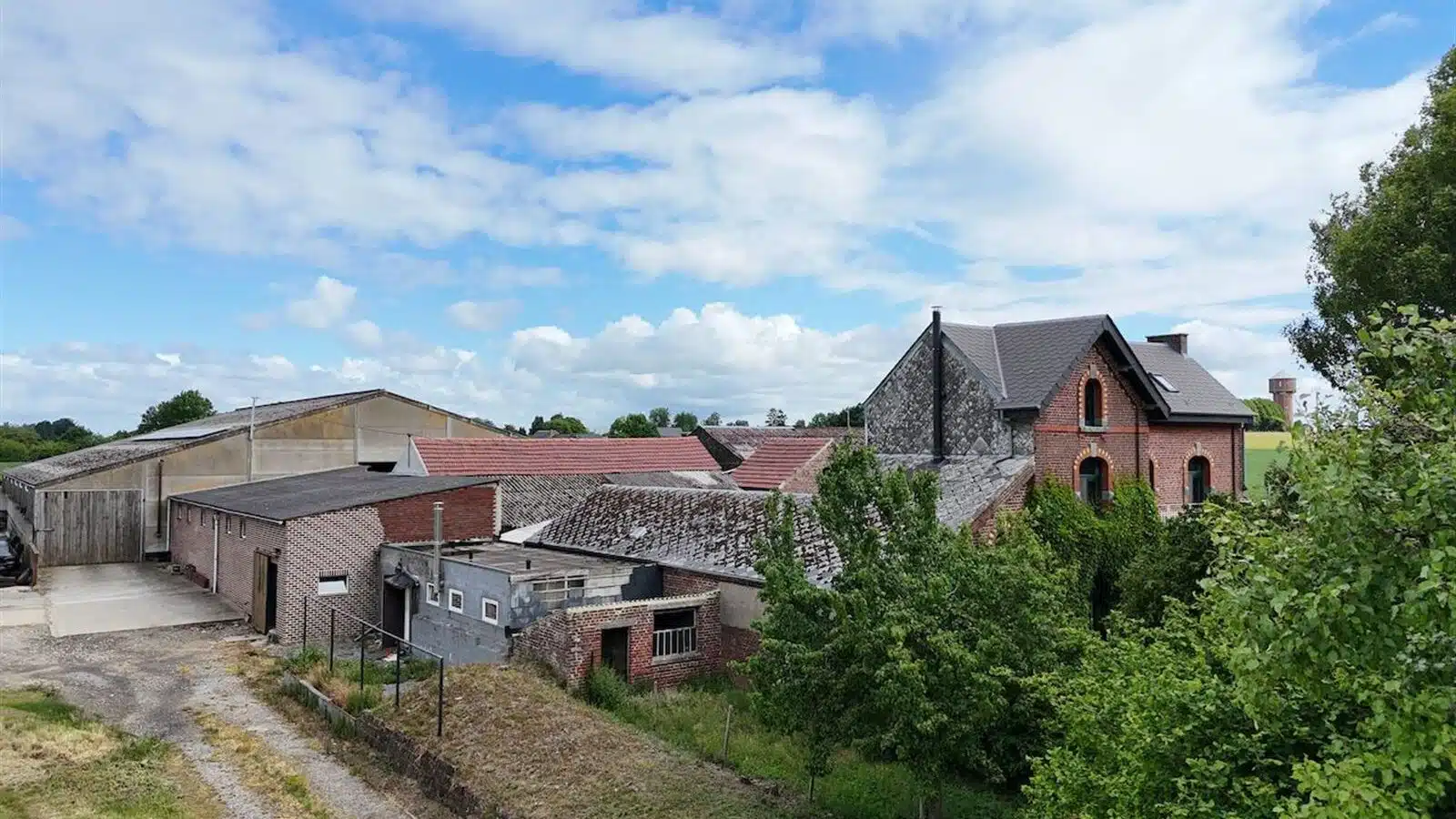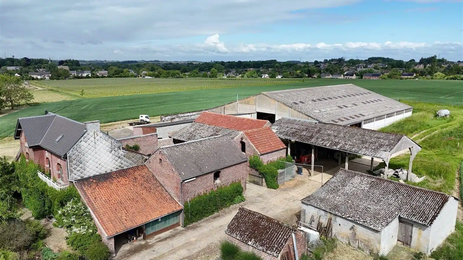 L’ensemble est composé d’un corps de logis de +/- 210 m² habitables, de diverses dépendances agricoles, d’une grande stabulation-hangar de 1080 m² et de terre de culture de qualité.