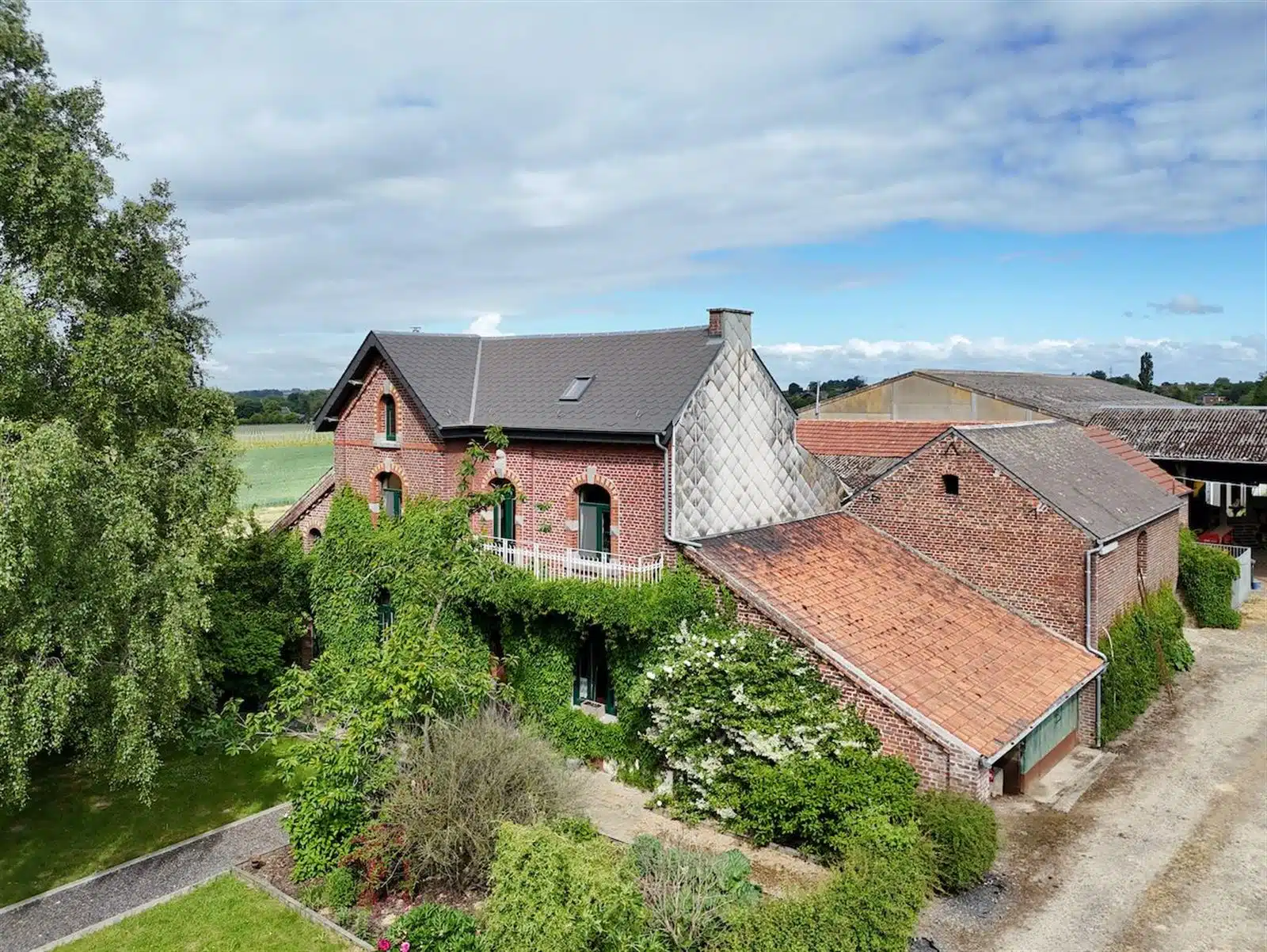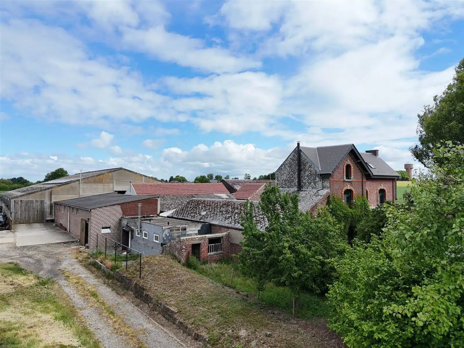 L’ensemble est composé d’un corps de logis de +/- 210 m² habitables, de diverses dépendances agricoles, d’une grande stabulation-hangar de 1080 m² et de terre de culture de qualité.
