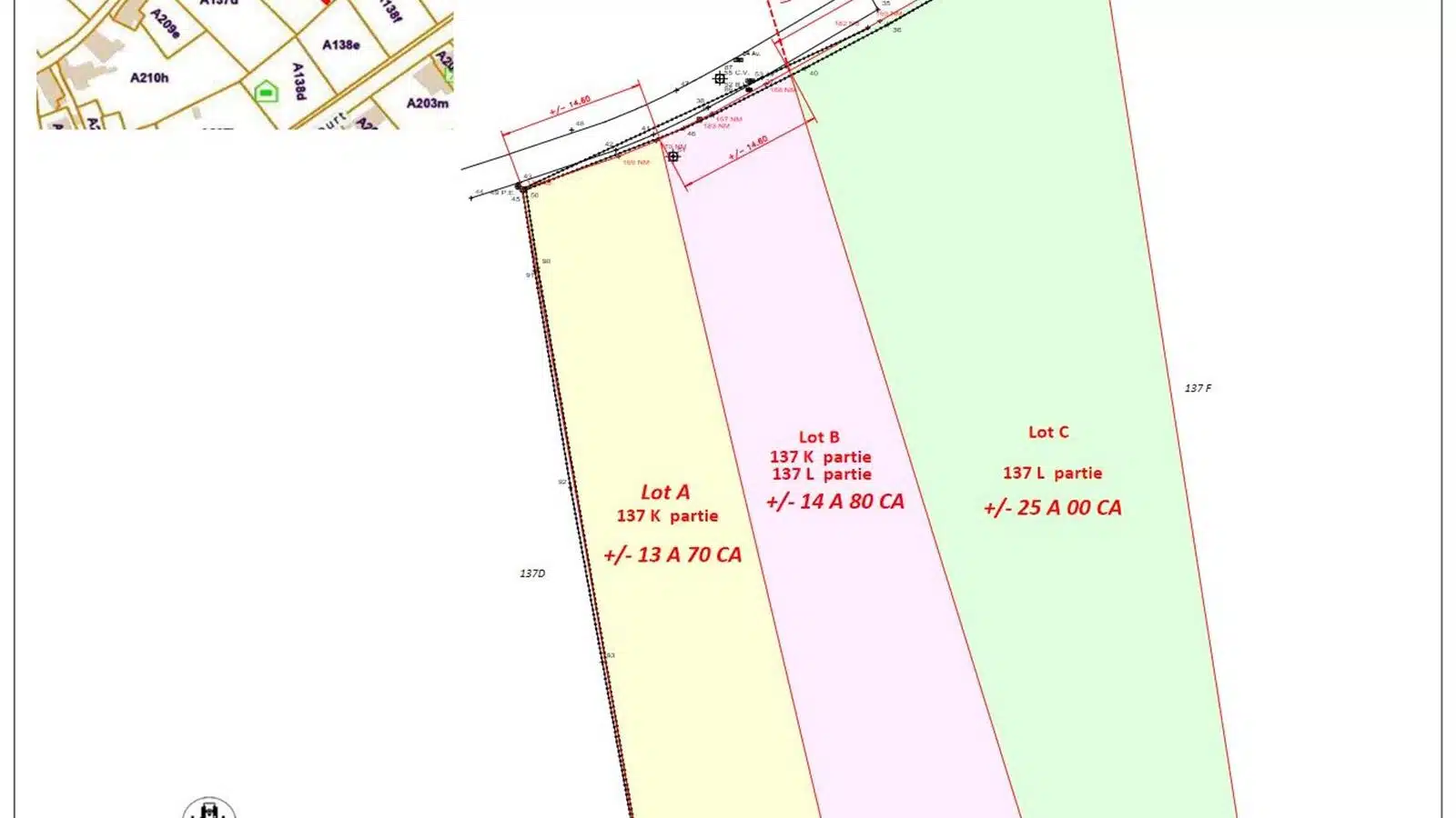 Lot E + 1233 m², façade à rue + 29 mètres rue Francourt. Faire offre à partir de 155.000 euros