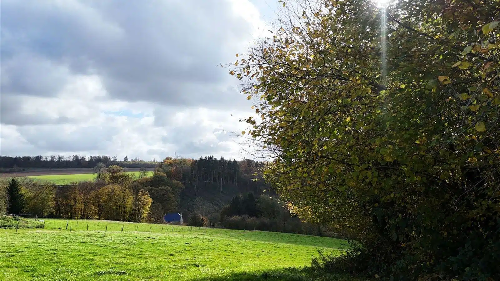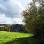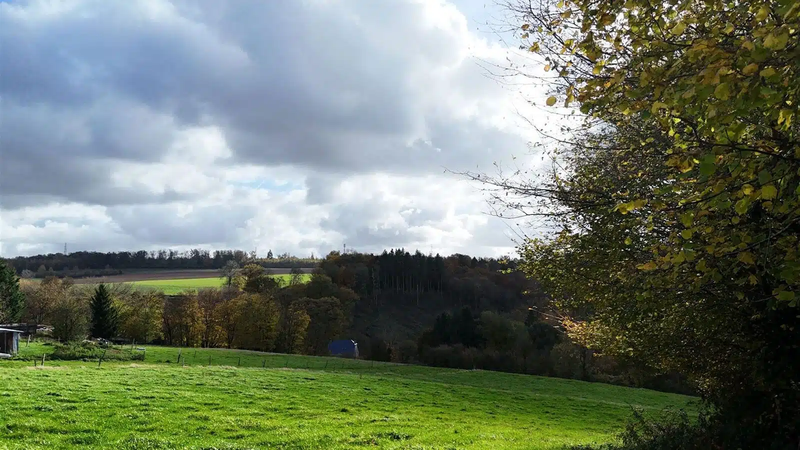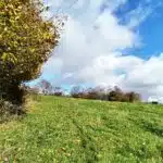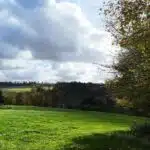 OPTION Terrain partiellement en zone d'habitat à l’état de prairie, de relief en pente sud sis à deux voiries asphaltées dans un très bel environnement, à côté du village de Celles.