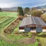 Le bâtiment offre une superficie de 1000 m² ( 25 m x 40 m) + 400 m² de fenils.