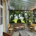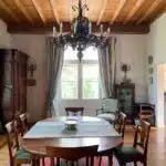 Dans le prolongement de la demeure, protégé par de vieux chênes, un jardin domine une piscine cachée dans la pente qui fait face au soleil couchant et présente une vue sur la vallée à plus de 50 km.