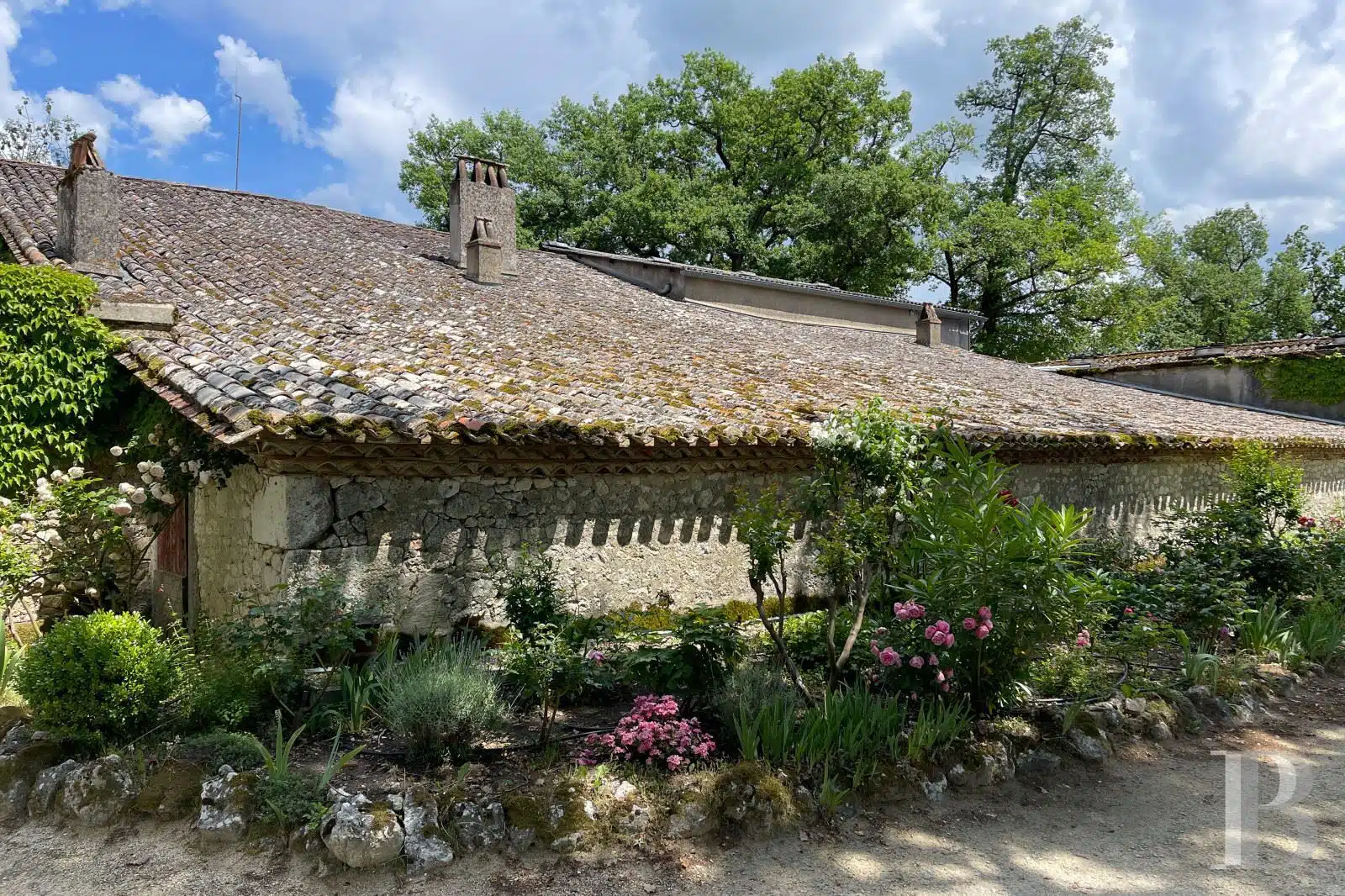 Dans le prolongement de la demeure, protégé par de vieux chênes, un jardin domine une piscine cachée dans la pente qui fait face au soleil couchant et présente une vue sur la vallée à plus de 50 km.