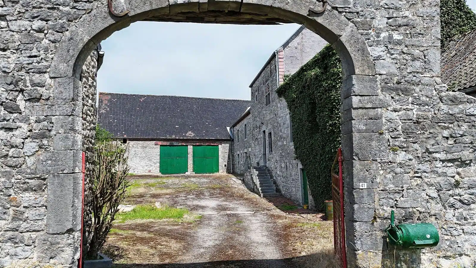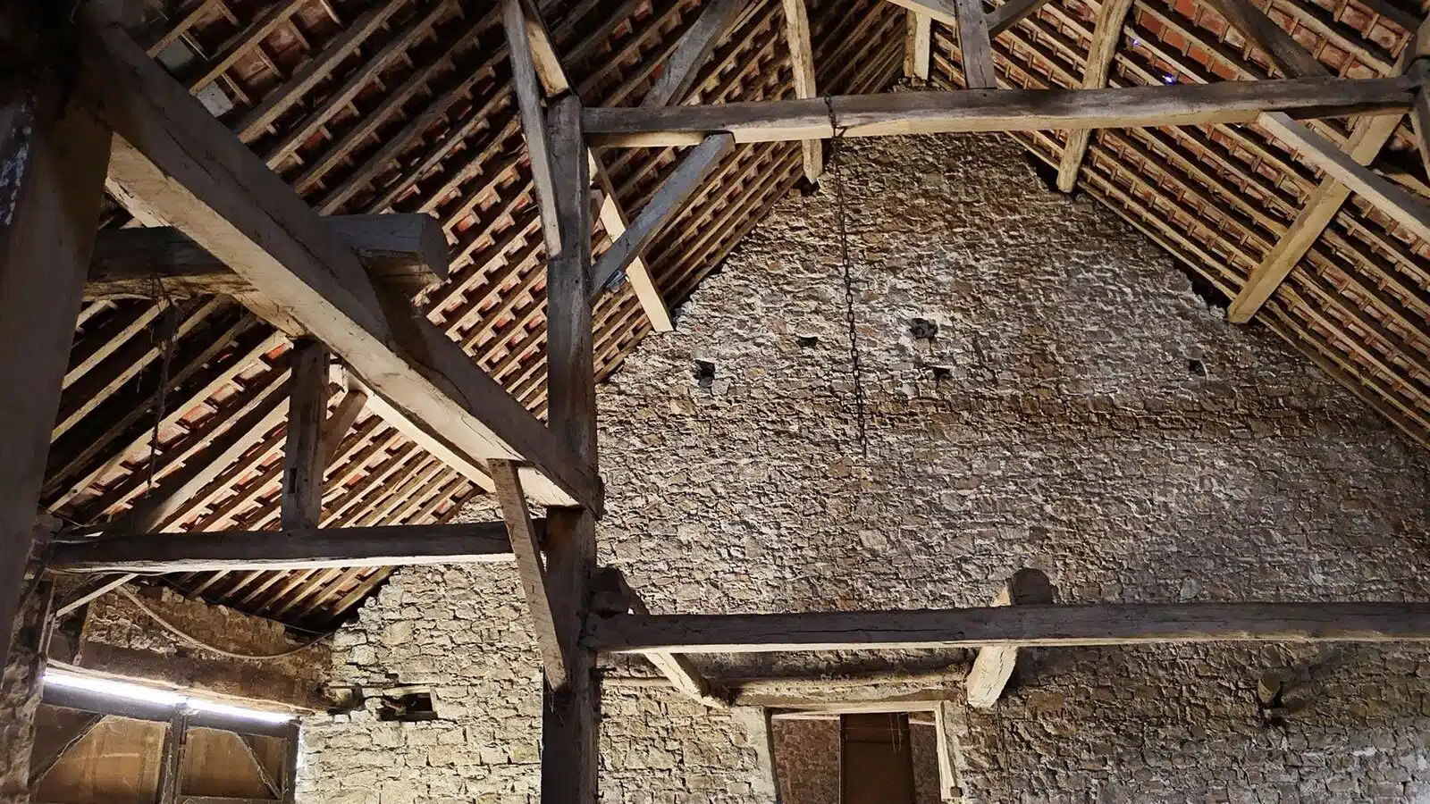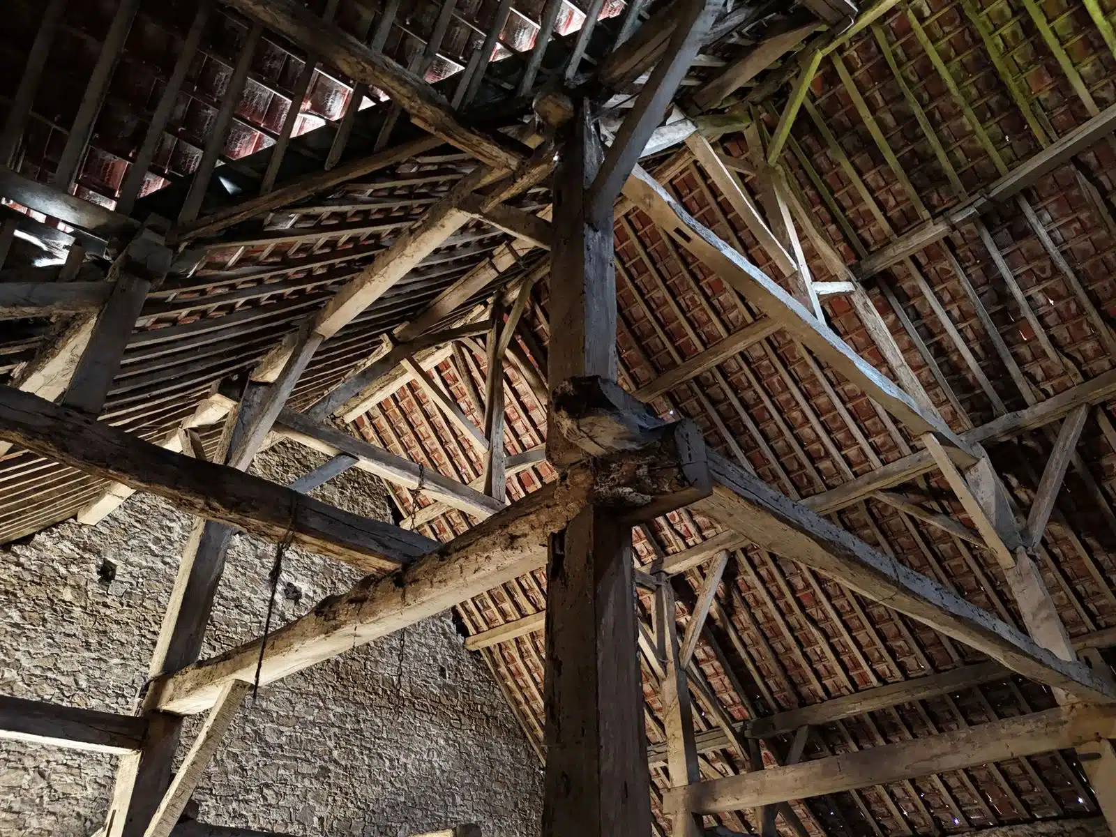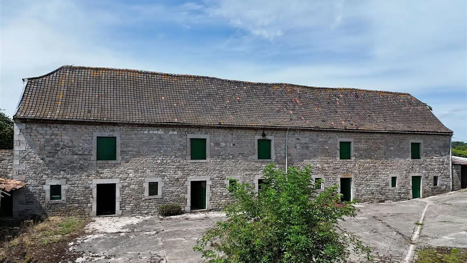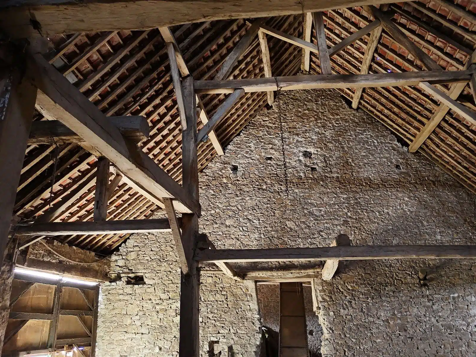 La cour est encerclée de divers anciens bâtiments comprenant le corps de logis, 2 belles granges avec superbes charpentes et d’anciennes étables surmontées de fenils.