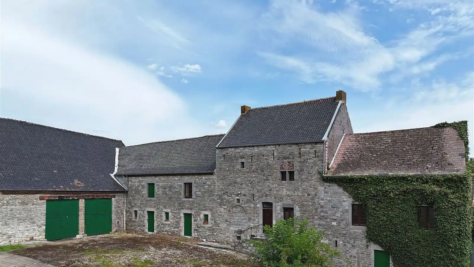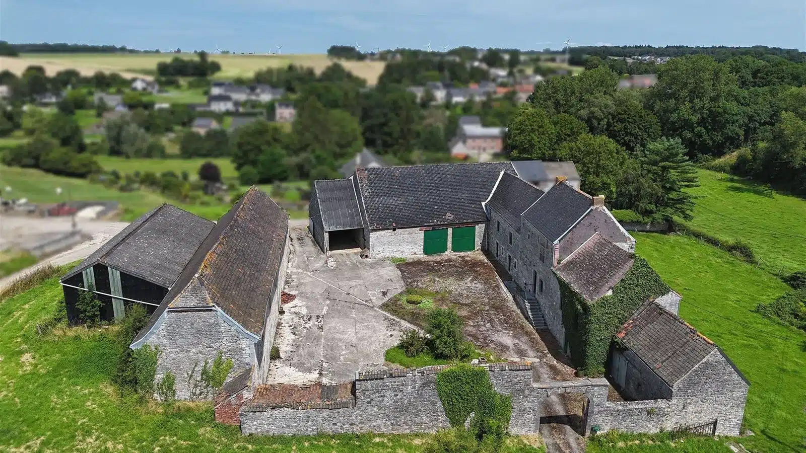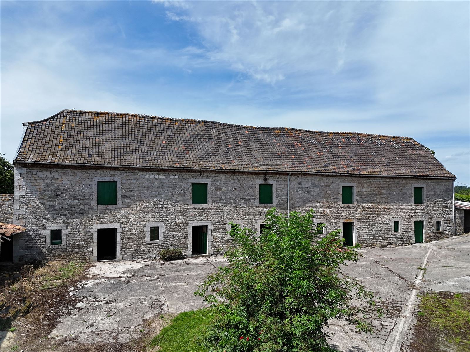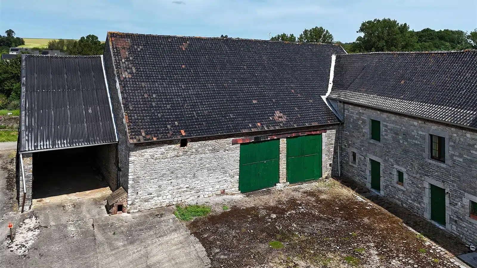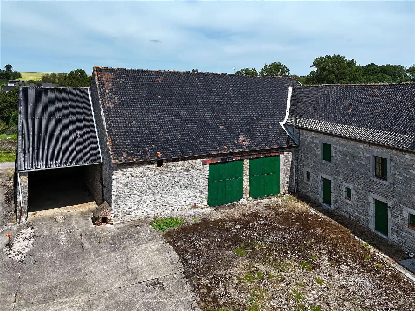 La cour est encerclée de divers anciens bâtiments comprenant le corps de logis, 2 belles granges avec superbes charpentes et d’anciennes étables surmontées de fenils.