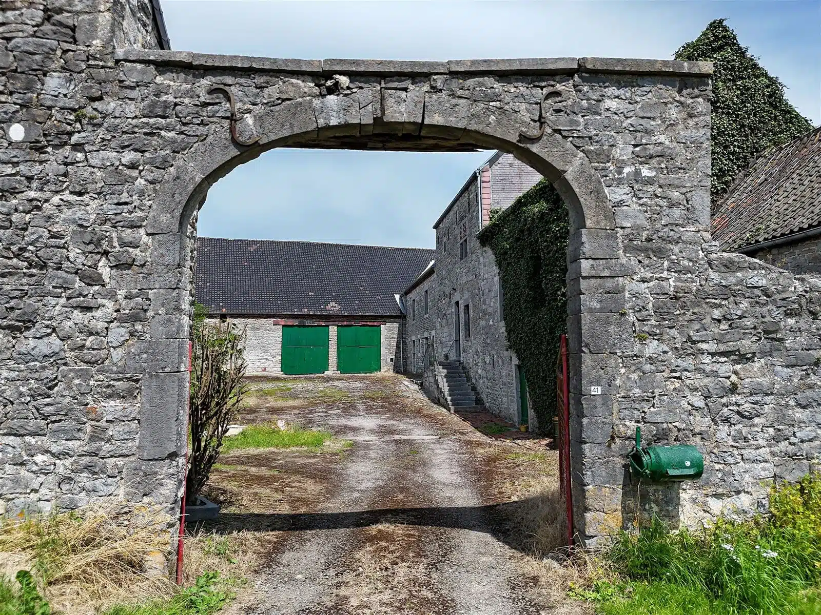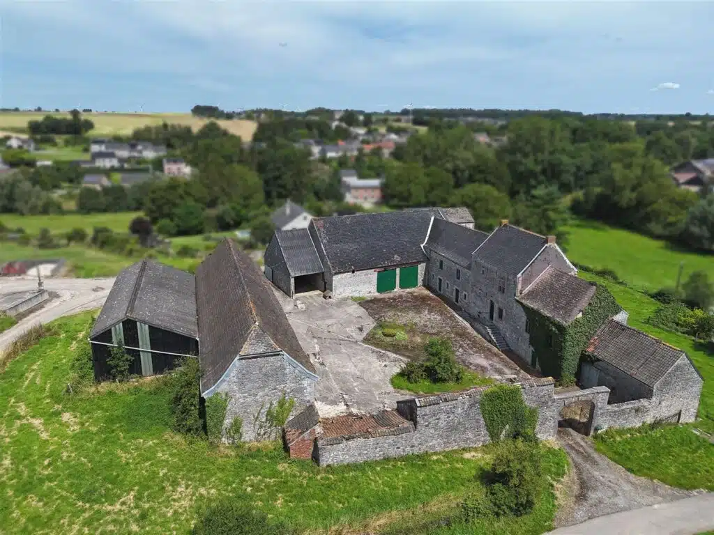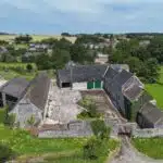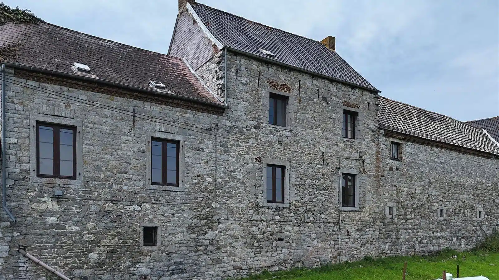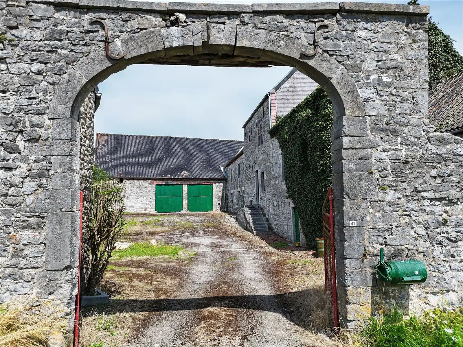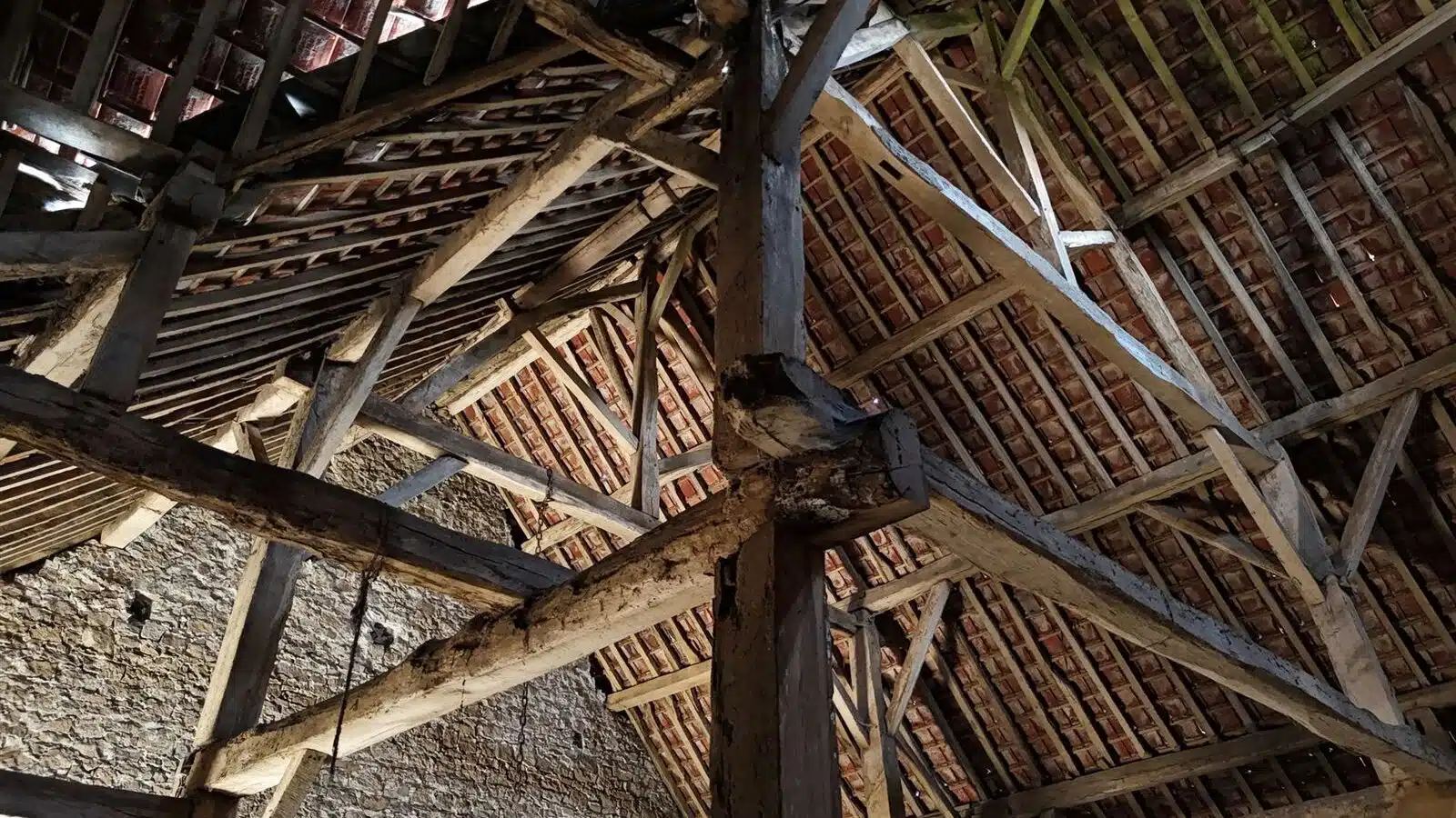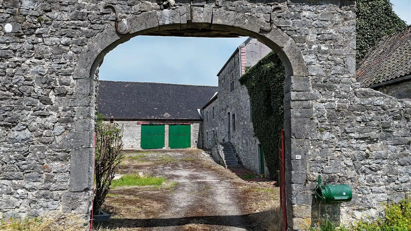 La cour est encerclée de divers anciens bâtiments comprenant le corps de logis, 2 belles granges avec superbes charpentes et d’anciennes étables surmontées de fenils.