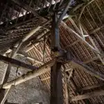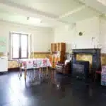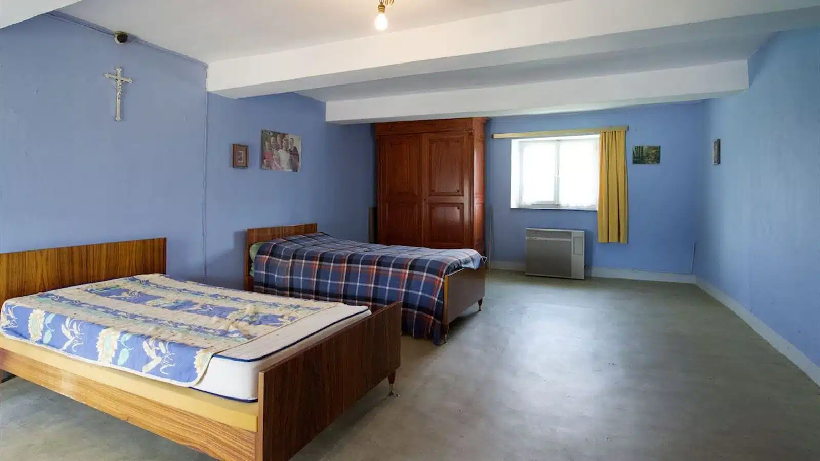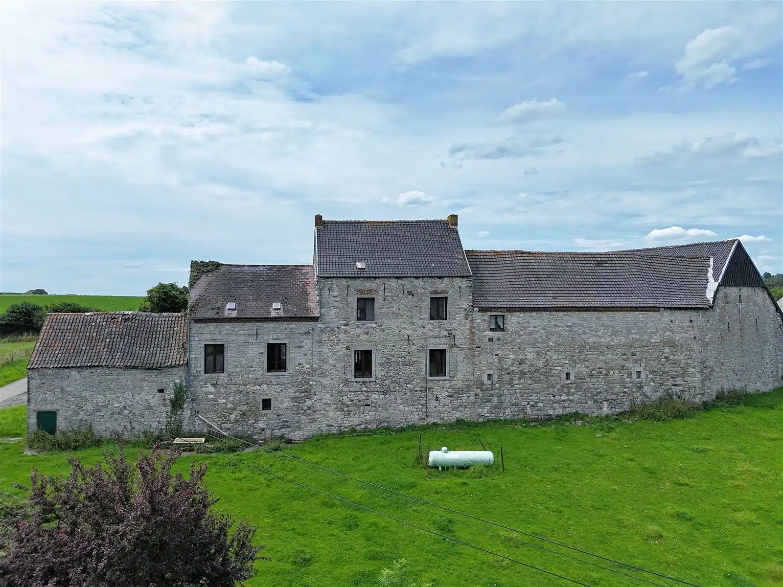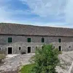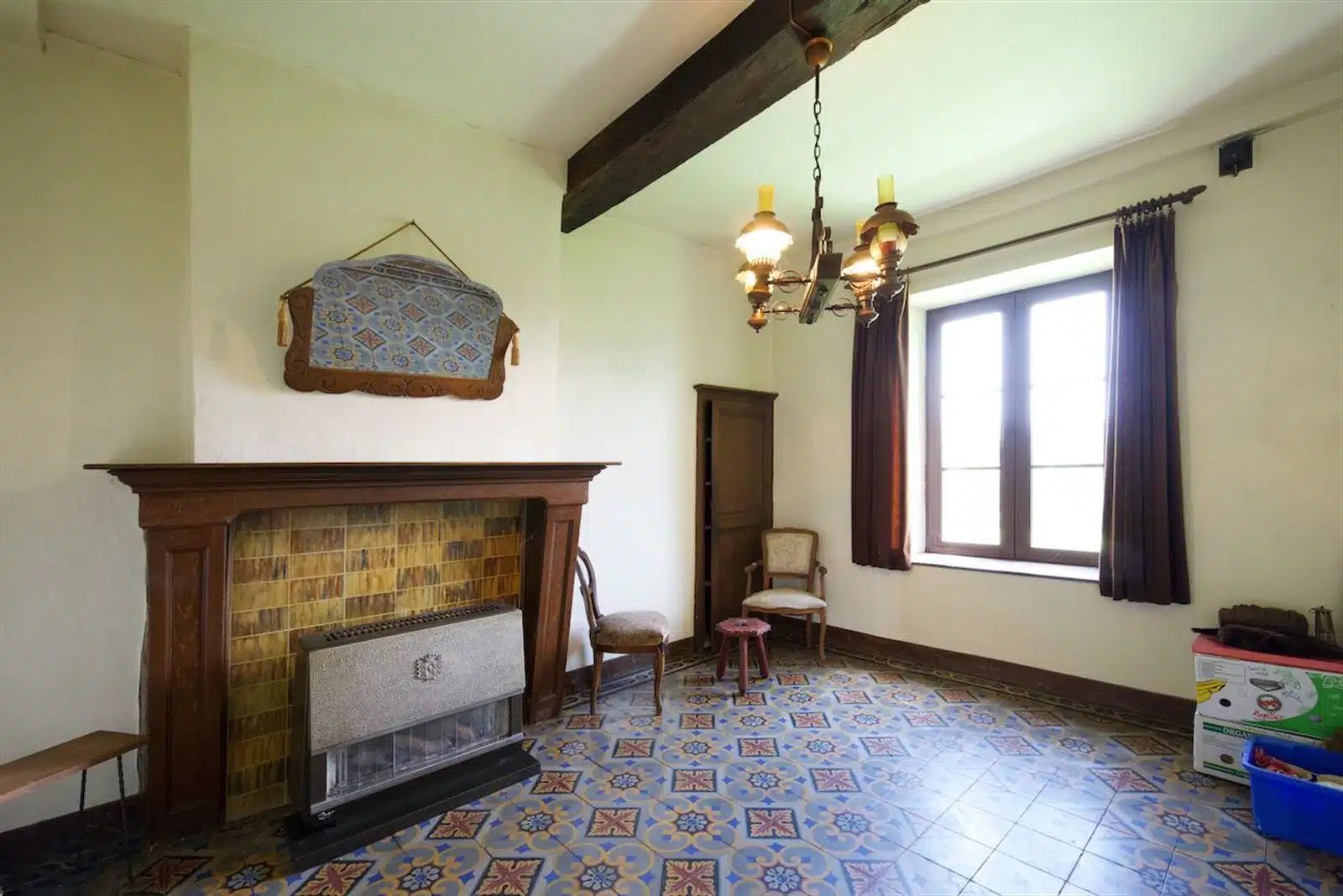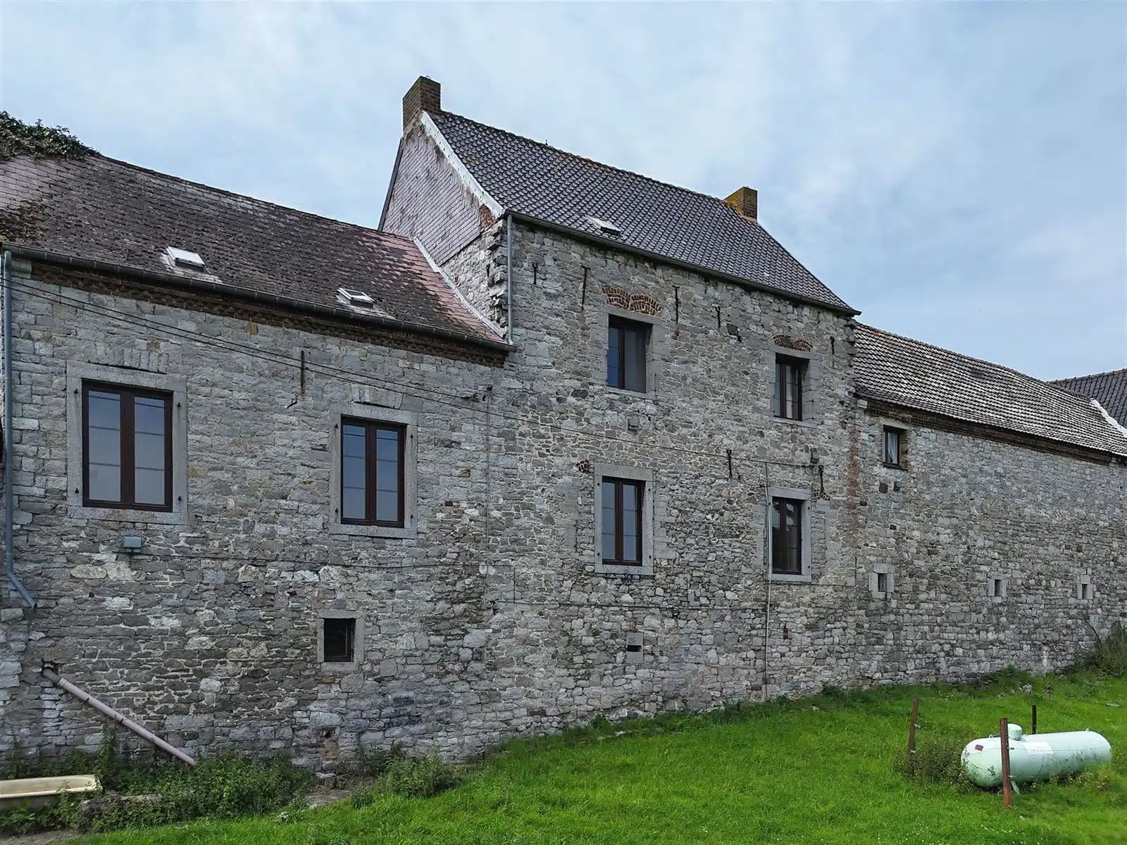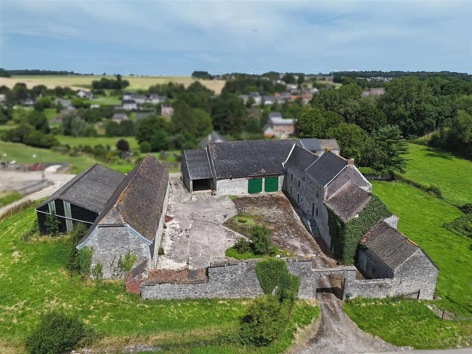 La cour est encerclée de divers anciens bâtiments comprenant le corps de logis, 2 belles granges avec superbes charpentes et d’anciennes étables surmontées de fenils.