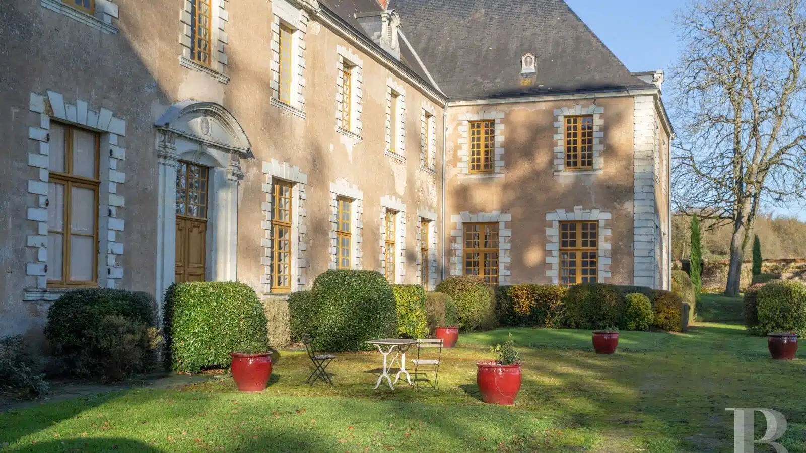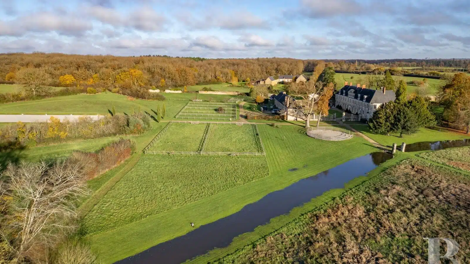 Proche de Sablé, entre Sarthe, Mayenne et Maine-et-Loire, un château MH des 16e et 17e s., ses dépendances et installations équestres sur 18 ha.