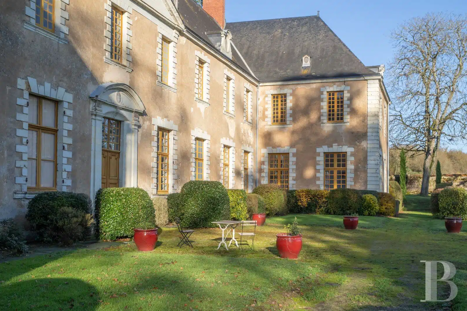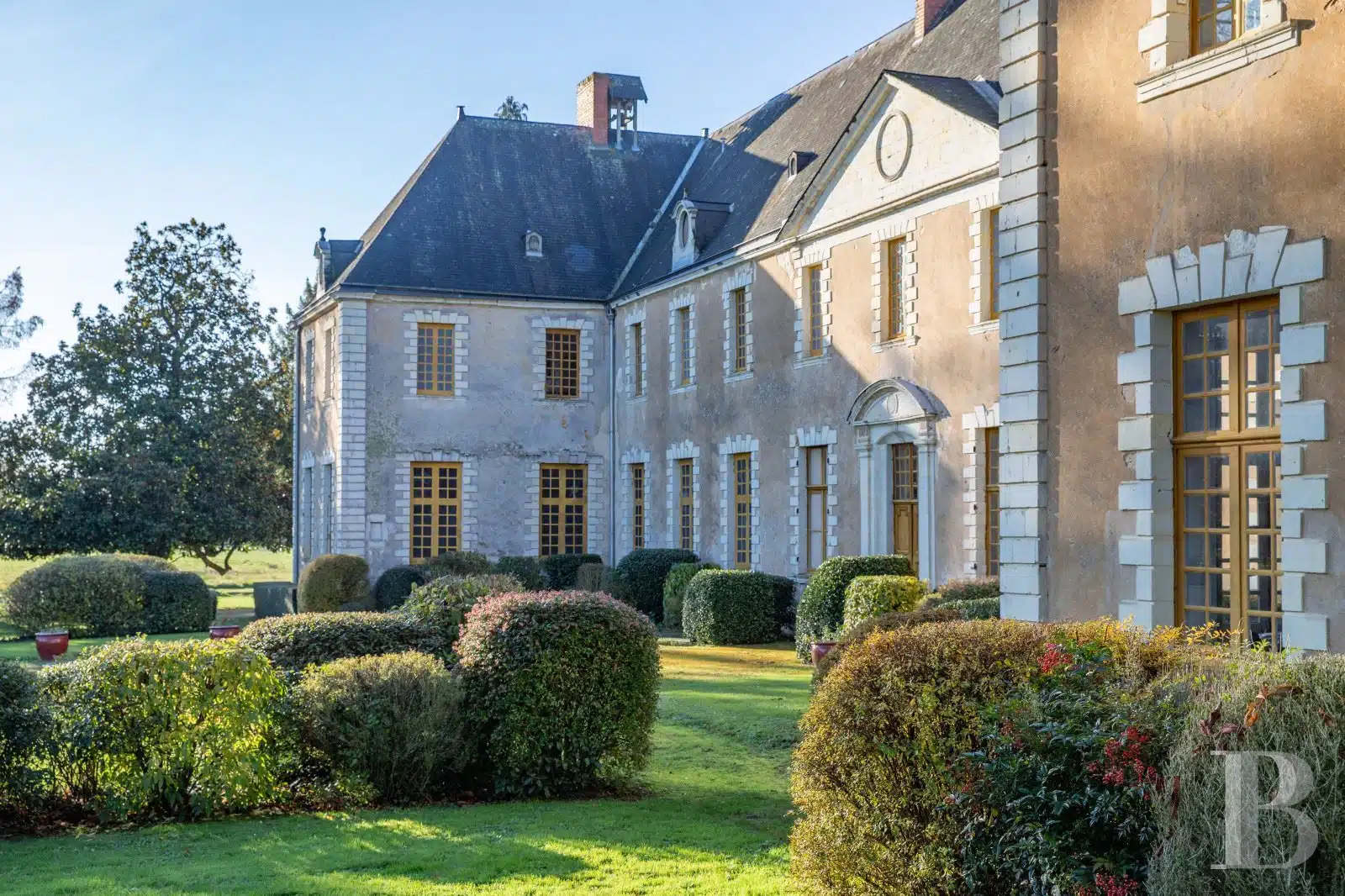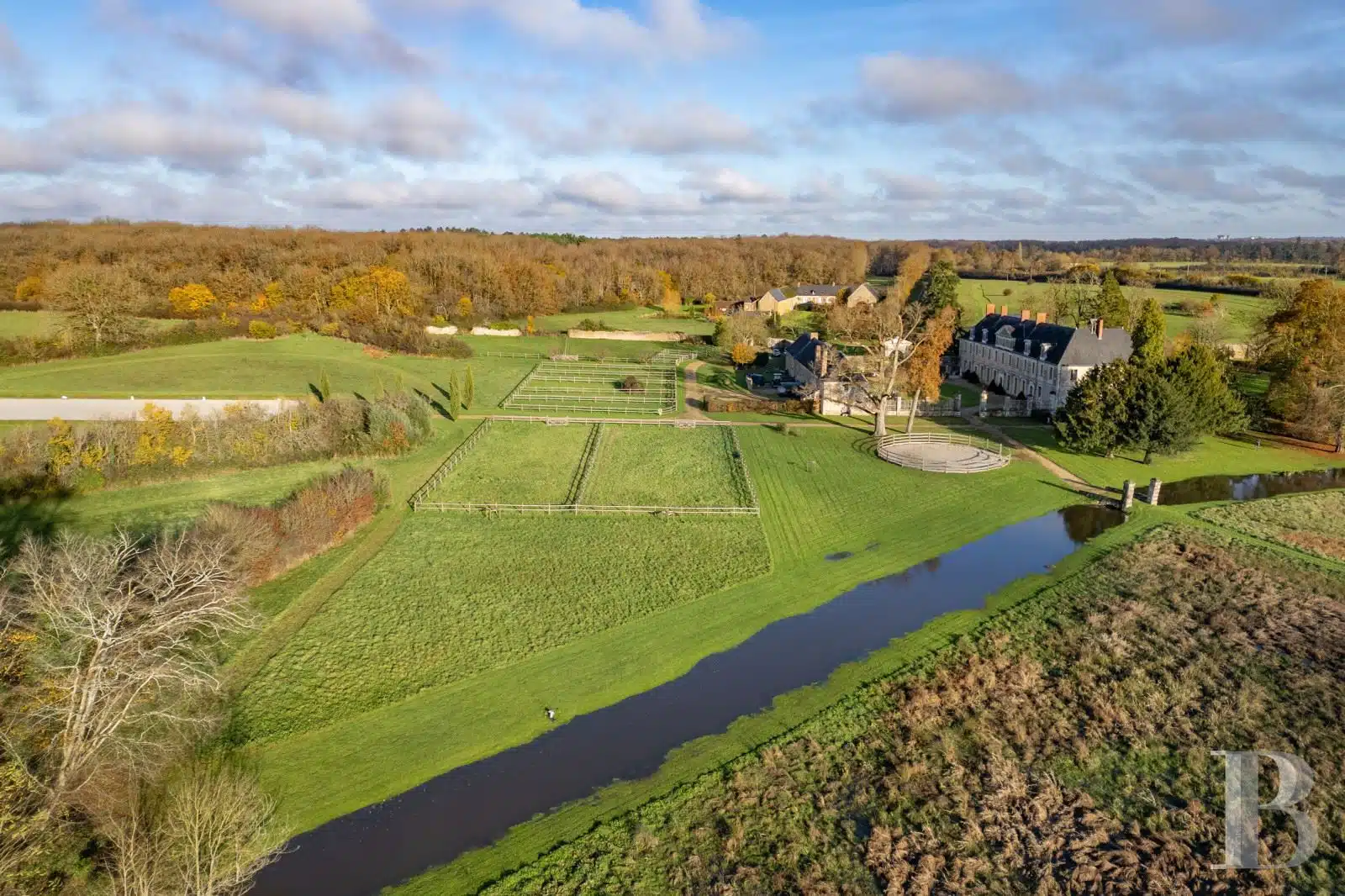 Proche de Sablé, entre Sarthe, Mayenne et Maine-et-Loire, un château MH des 16e et 17e s., ses dépendances et installations équestres sur 18 ha.