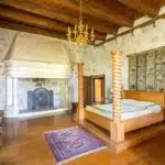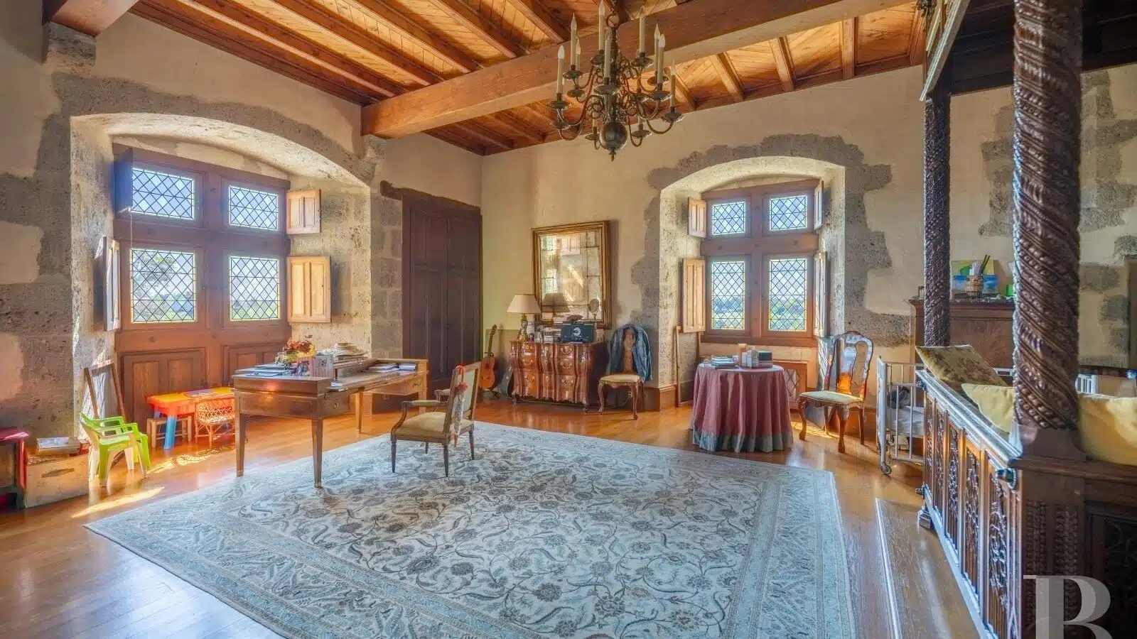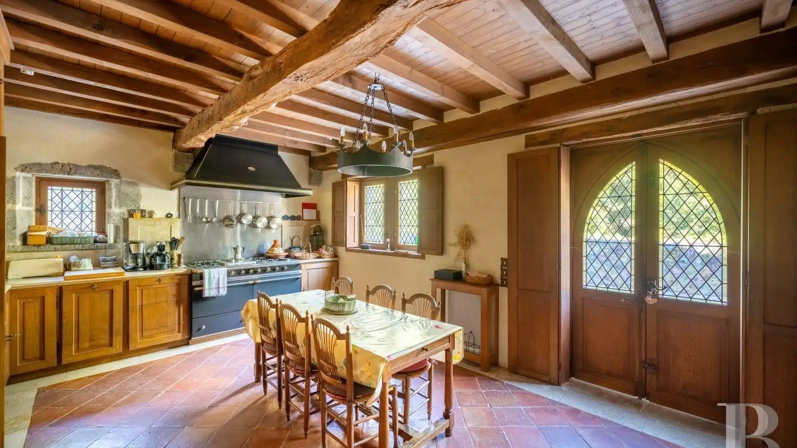 À une soixantaine de mètres de la première dépendance, une seconde, de type longère, entourée de prés clos, abrite un logement et des écuries. Un hangar à vocation agricole, fermé sur trois pans, complète les lieux. Desservie par un chemin d'accès privé qui conduit à la route, cette partie du domaine est séparée des habitations principales par un épais massif végétal. En contre-bas du château, à flanc de coteau, une piscine à débordement prend place au sein d'une grande terrasse dallée, agrémentée d'une étonnante cuisine d'été abritée et bâtie contre la roche en sortie de douve. Les terres du domaine s'étendent jusqu'au lac créé en bas du vallon et sur les coteaux.