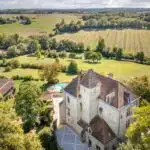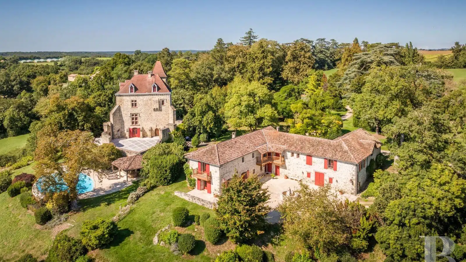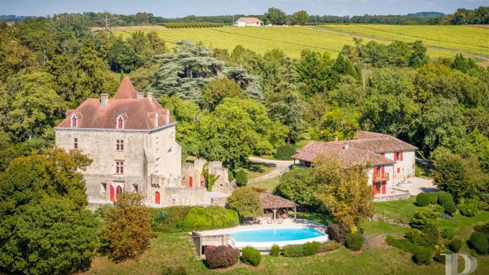 Dans le Lot-et-Garonne, à la limite du Gers, proche d'une cité historique et touristique, un château gascon restauré du 13e s. sur un terrain 30 ha, avec maisons d'amis, dépendances, piscine et tennis.