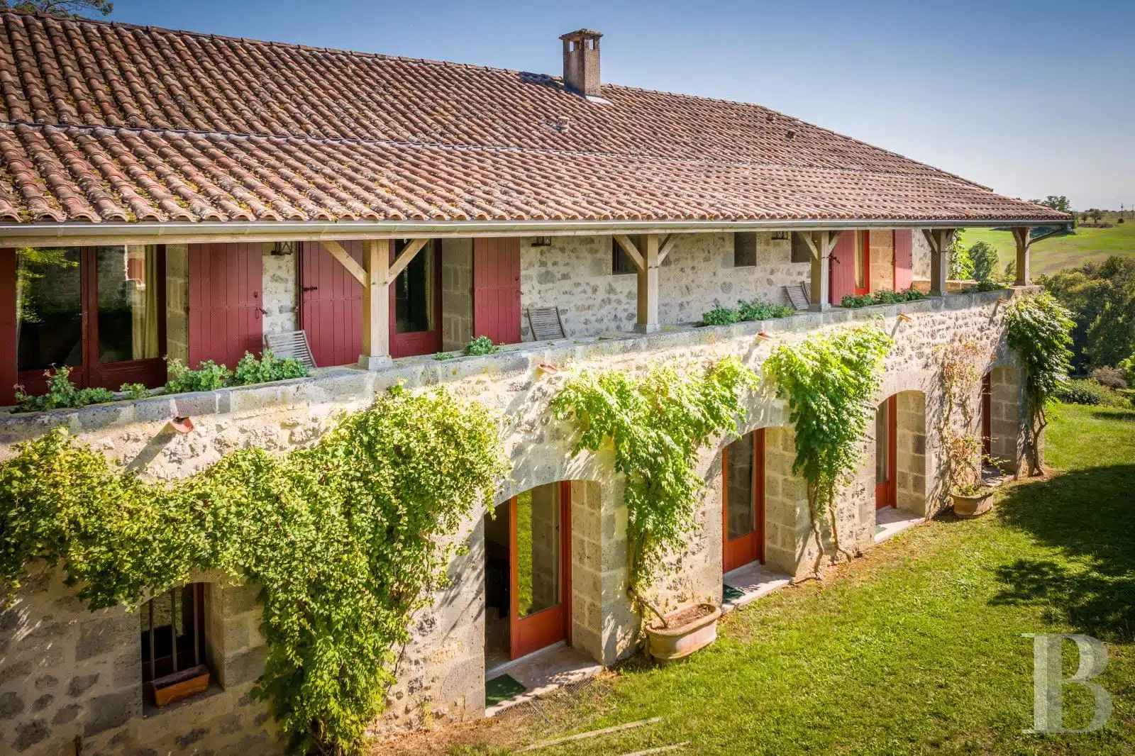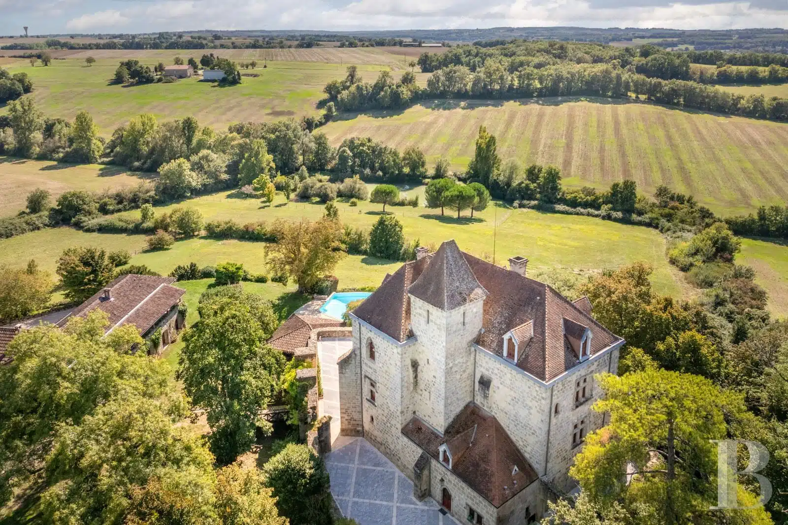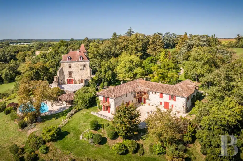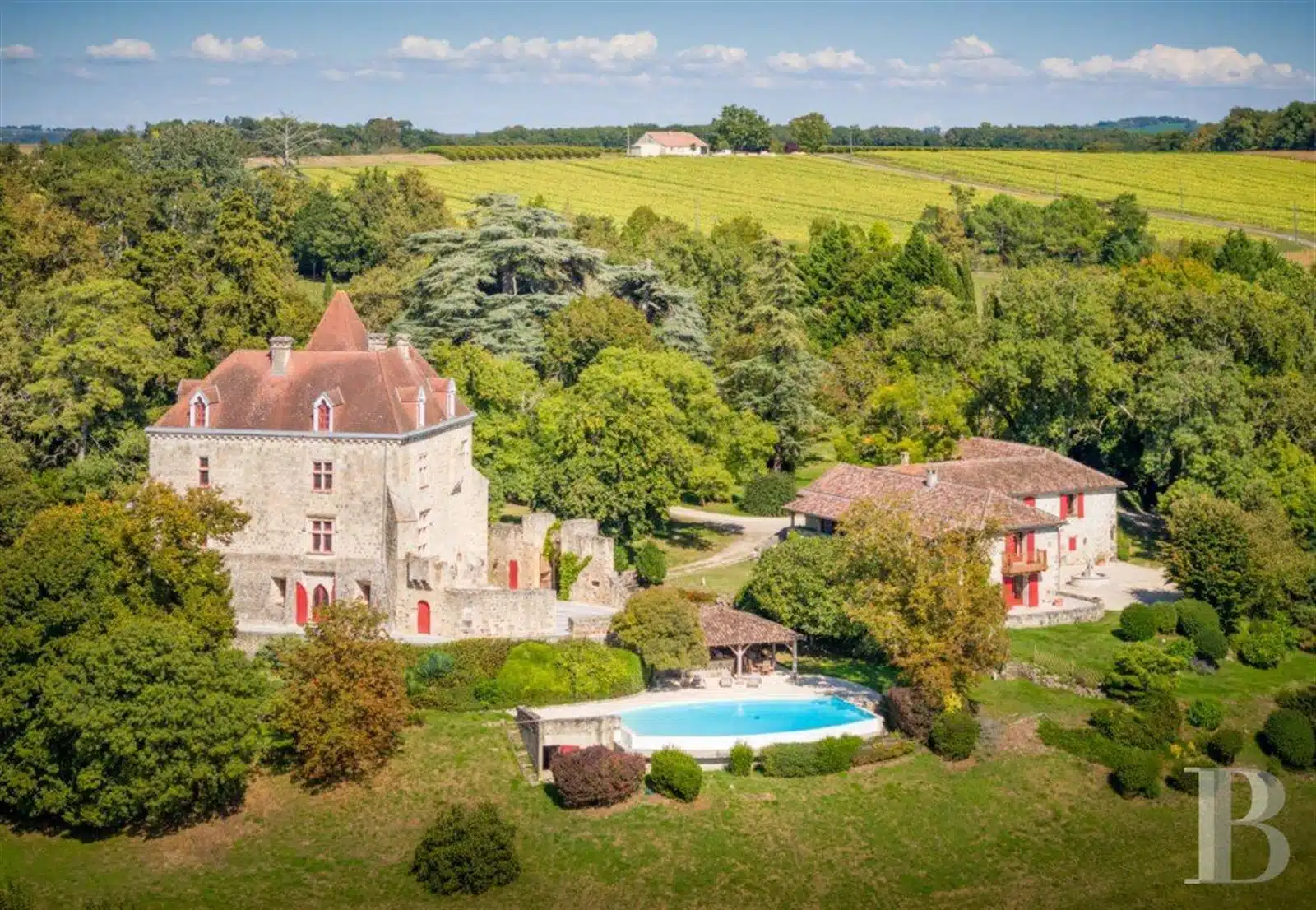 Dans le Lot-et-Garonne, à la limite du Gers, proche d'une cité historique et touristique, un château gascon restauré du 13e s. sur un terrain 30 ha, avec maisons d'amis, dépendances, piscine et tennis.