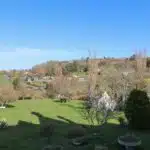 Que ce soit depuis le portail principal ou celui proche des garages, deux allées font le tour de la propriété et aboutissent au manoir. La première longe la maison de gardien tandis que la seconde, à l'opposé, contourne un grand bâtiment de ferme, une dépendance à usage de garage et d'atelier et traverse une double rangée de hêtres pour aboutir de l'autre côté du manoir. Inséré entre ces deux allées, le jardin descend doucement vers la mer. A l'arrière du manoir, la pente boisée grimpe vers le sommet du coteau.
