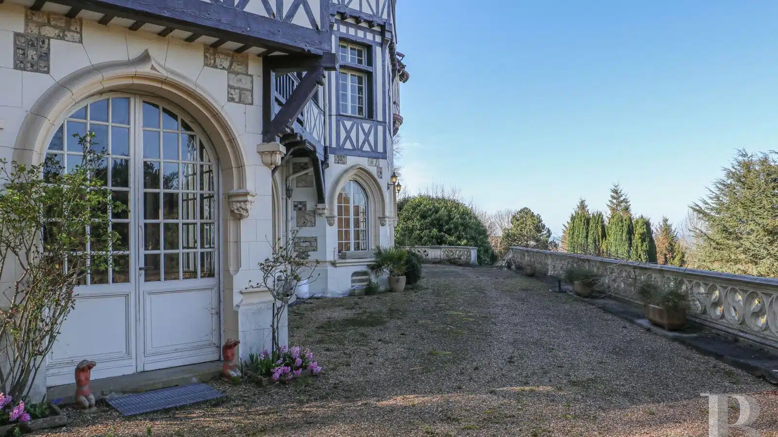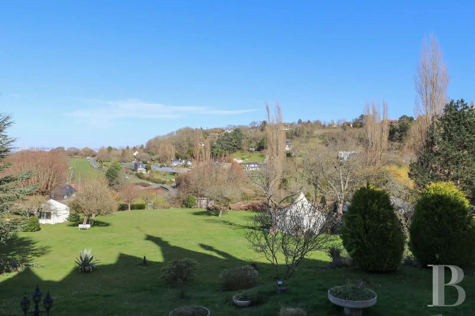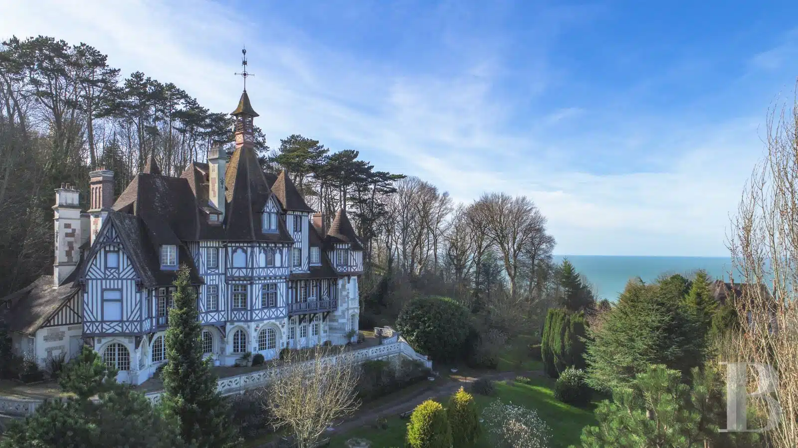 Proche de Trouville et dominant l'estuaire de la Seine, un majestueux manoir du début du 20e s. et ses dépendances dans un parc de plus de 7 ha.