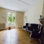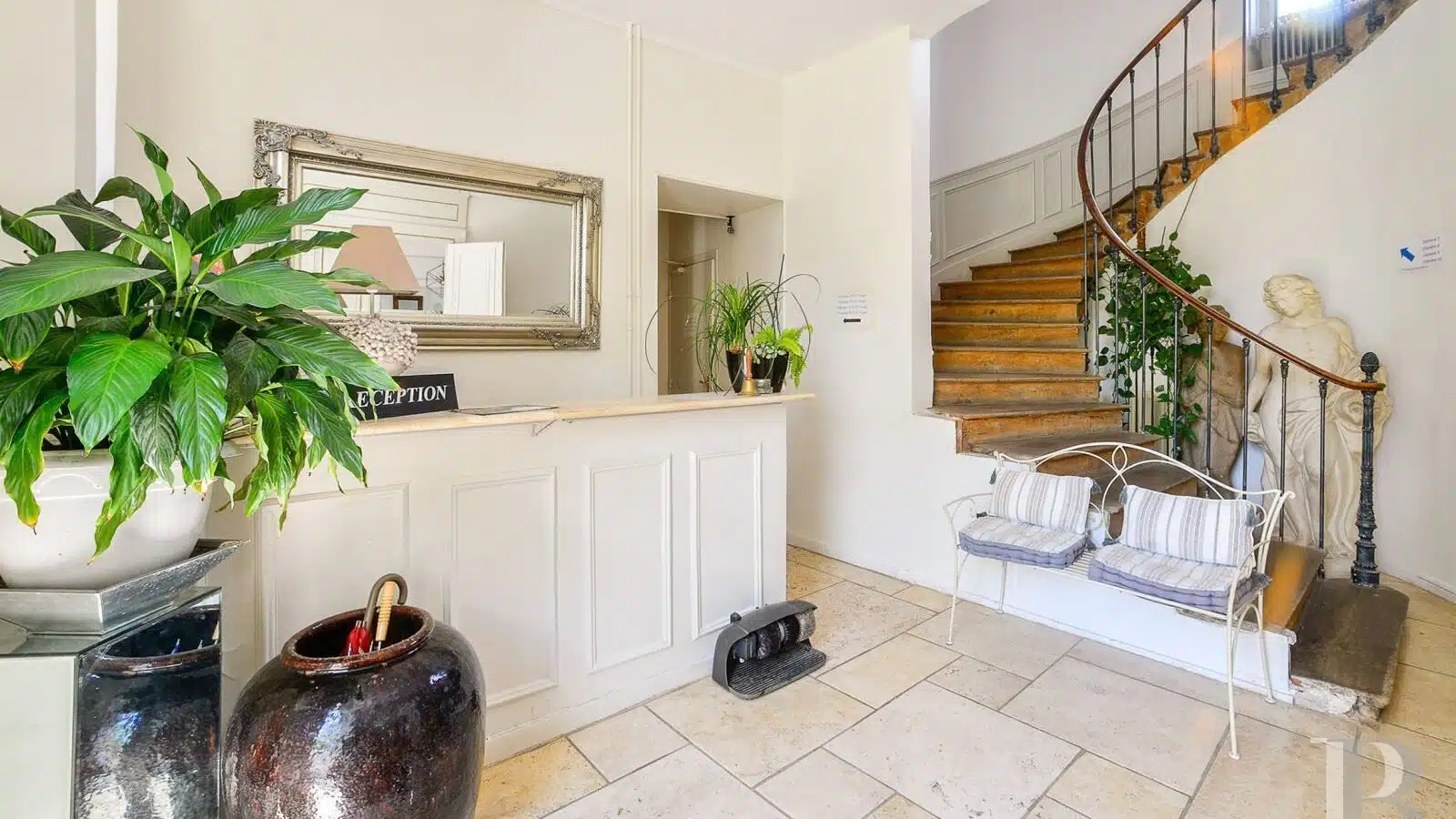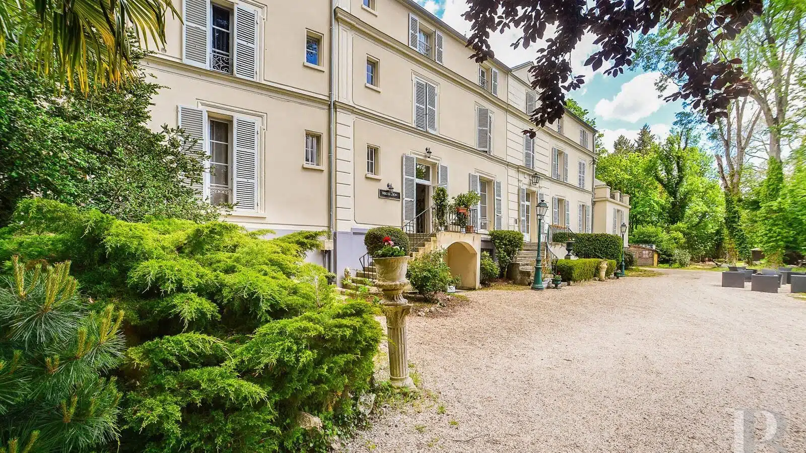 La demeure est formée d'un corps de logis central flanqué de deux pavillons et dune annexe, bâtie dans le prolongement de l'un deux. Les façades, sobres et régulières, sont revêtues d'un enduit beige et rehaussées de chaînes d'angle ainsi que de multiples bandeaux et corniches moulurés, qui soulignent chacun des trois niveaux. L'élévation principale compte six travées. Lavant-corps central présente un grand appareil à bossages surmonté d'un fronton triangulaire avec un oeil-de-boeuf buché. Un perron avec double escalier arrondi et garde-corps en fer mène à l'entrée. Les toitures en ardoise à forte pente sont agrémentées de lucarnes et de fenêtres de toit.