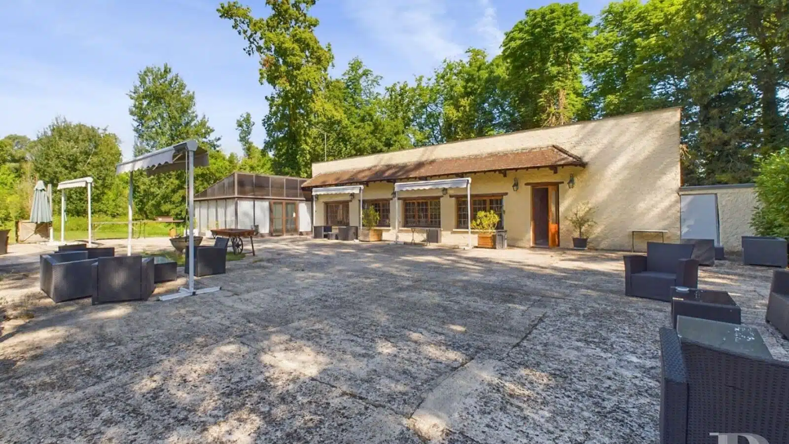 Enfin, dans le prolongement visuel du bâti, se tiennent des dépendances modernes en bordure de propriété ainsi qu'un étang dans un espace boisé, le tout d'un seul tenant.