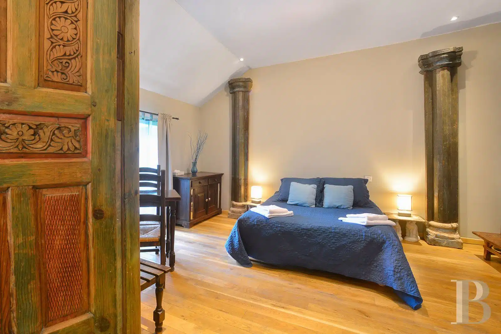 Enfin, dans le prolongement visuel du bâti, se tiennent des dépendances modernes en bordure de propriété ainsi qu'un étang dans un espace boisé, le tout d'un seul tenant.