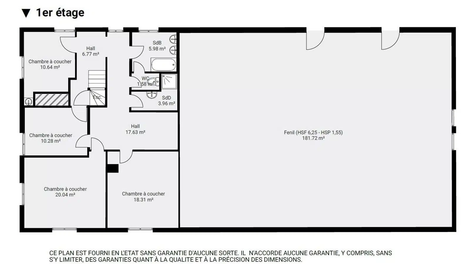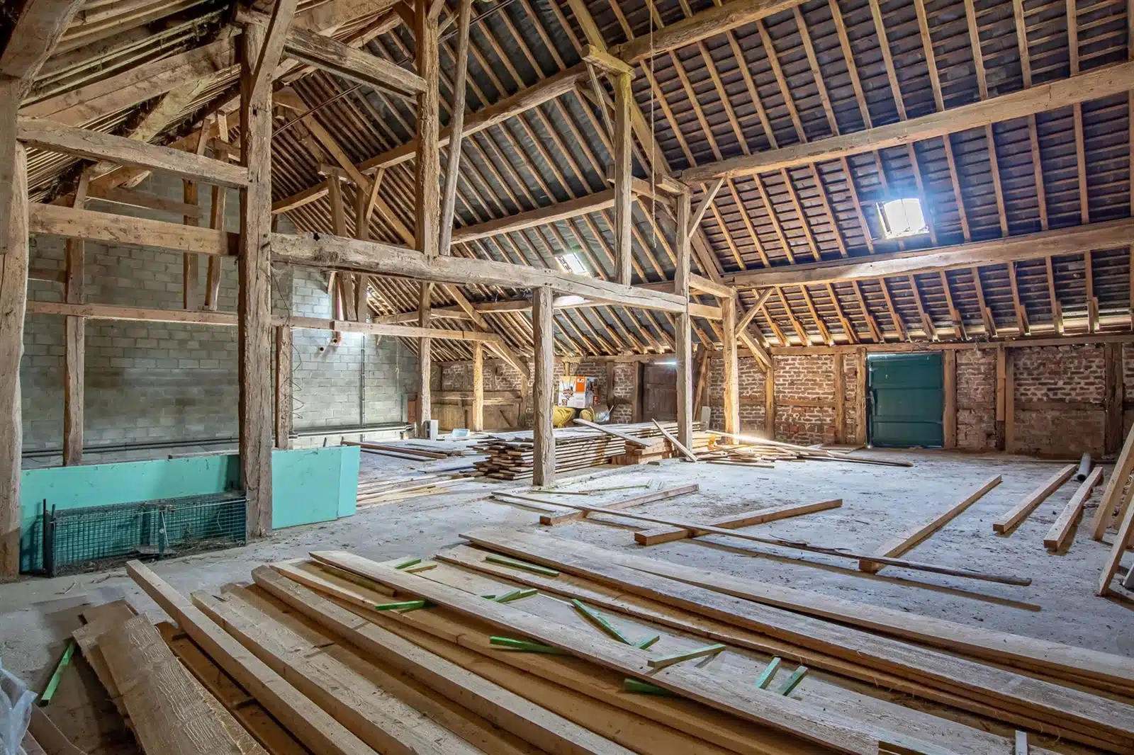 Le corps de logis propose environ 230 m² habitables comprenant 5 chambres et 2 salles de bains. La grange voisine de 180 m² offre de beaux volumes aménageables.