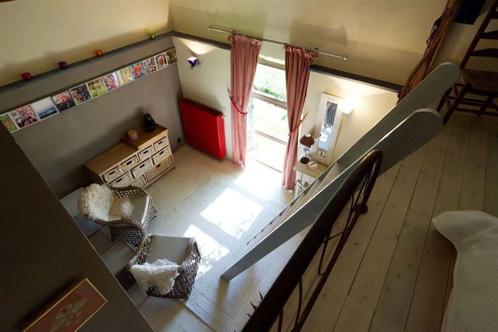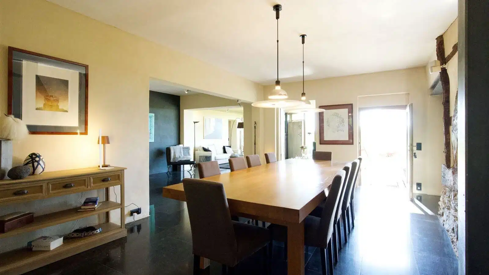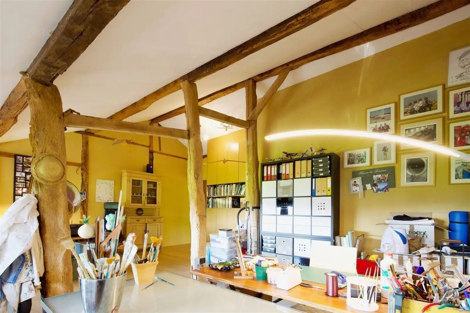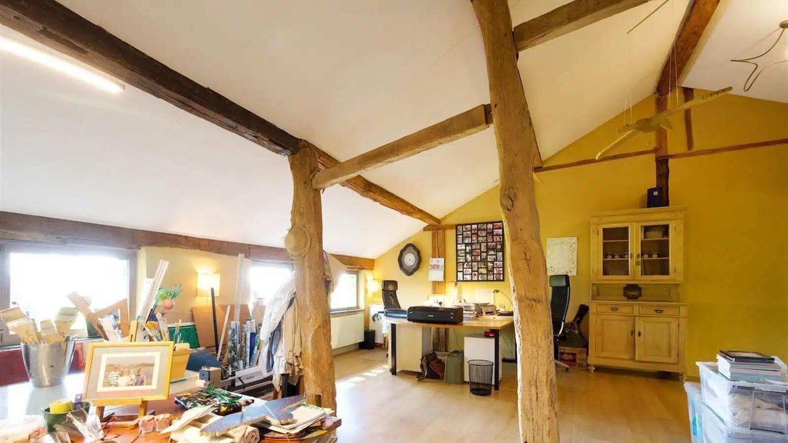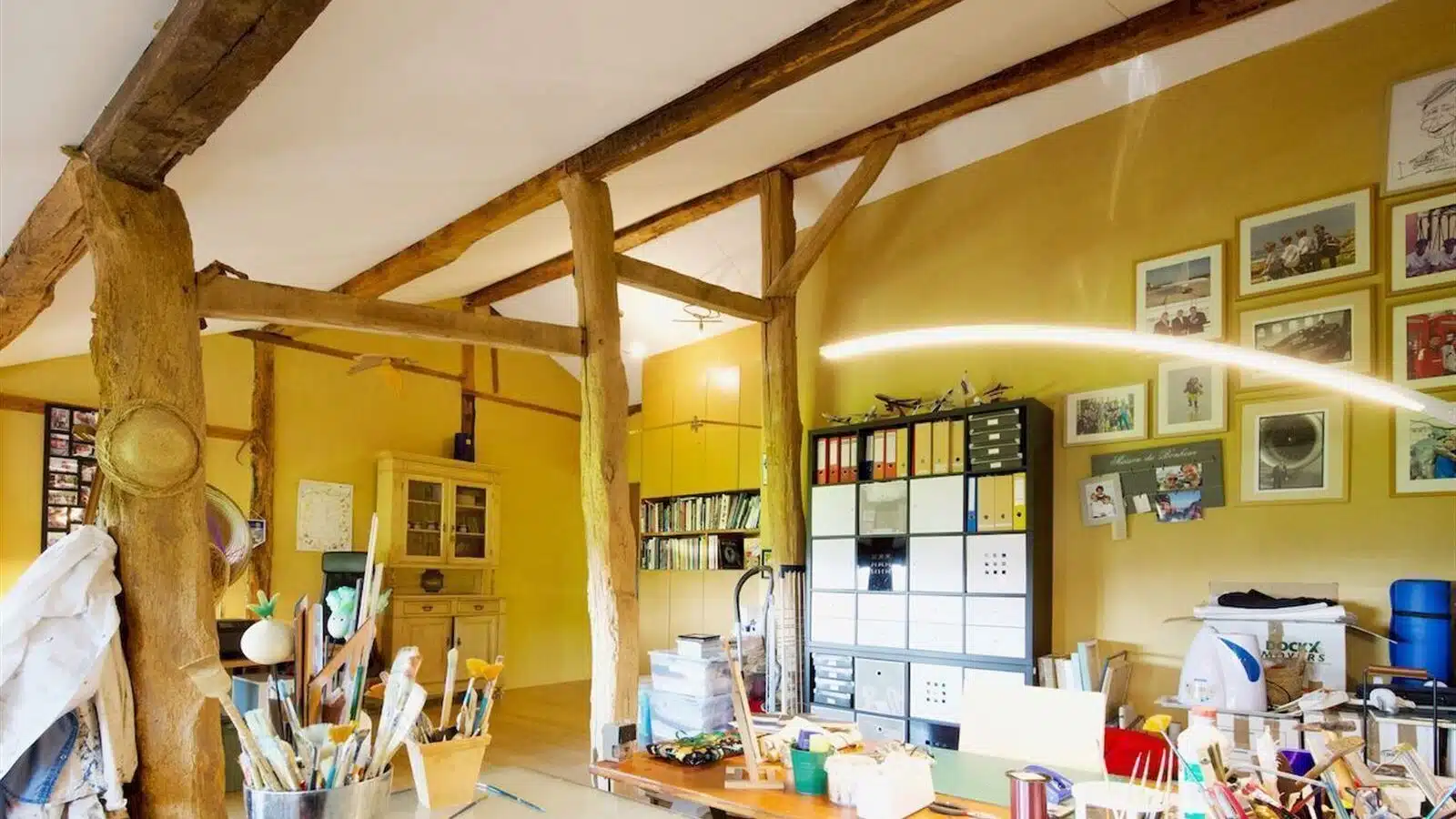 L’habitation comprend de très agréables pièces de vie : grand et lumineux salon, salle à manger, cuisine équipée, petit salon, sauna, 5 chambres dont une avec sauna, 5 salles de bains et également un vaste bureau et un grand atelier/ pièce polyvalente.
