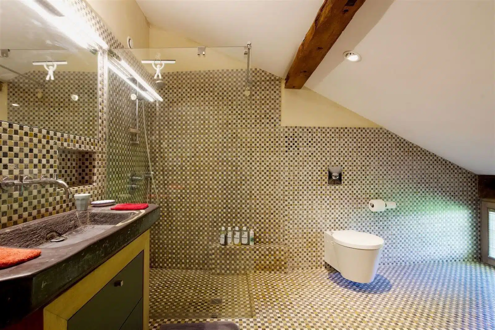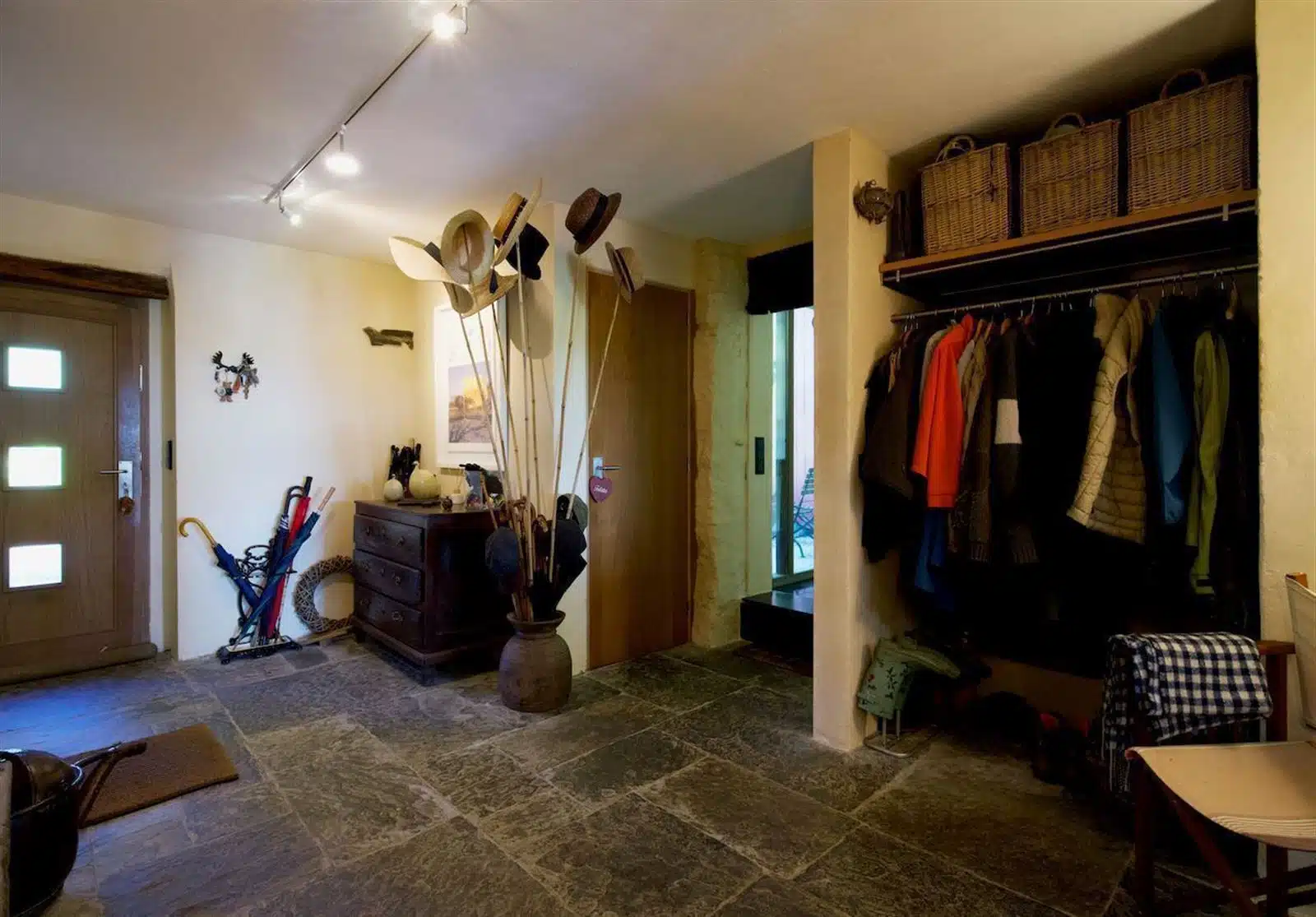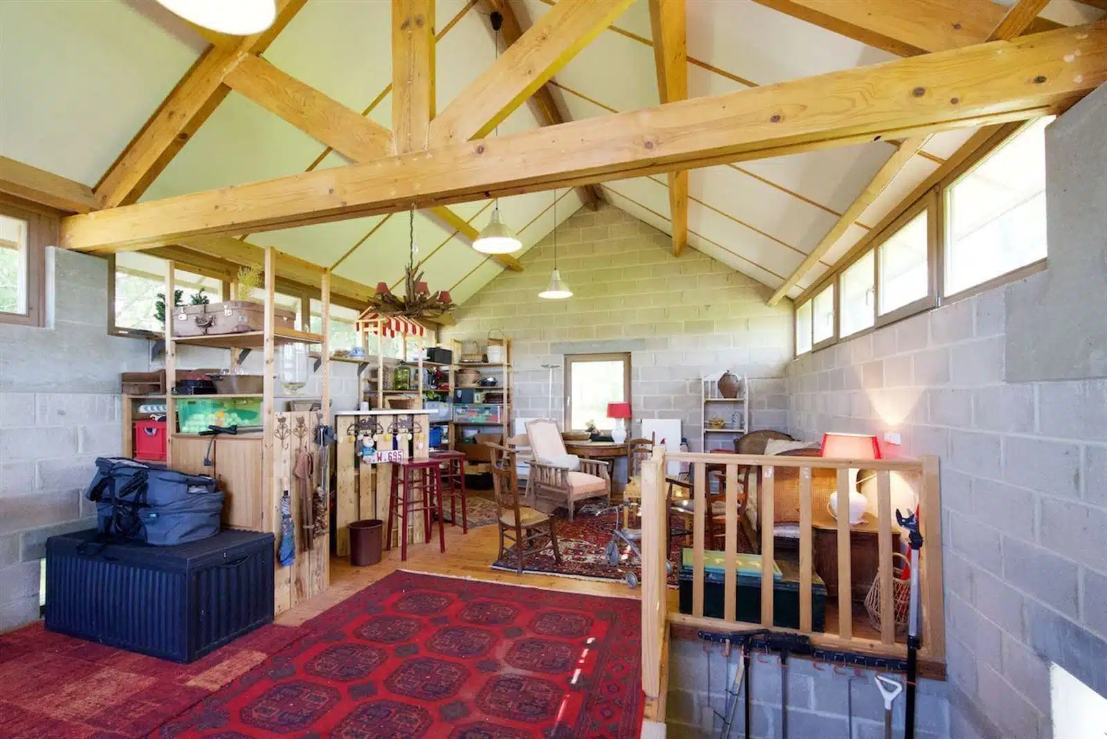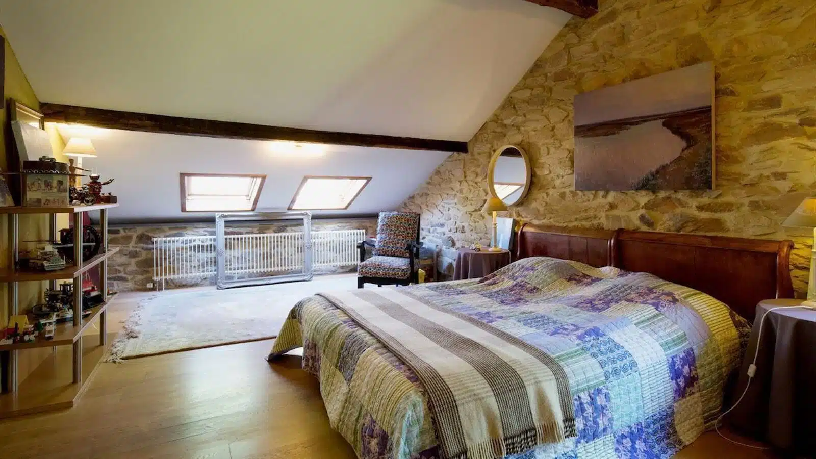 L’habitation comprend de très agréables pièces de vie : grand et lumineux salon, salle à manger, cuisine équipée, petit salon, sauna, 5 chambres dont une avec sauna, 5 salles de bains et également un vaste bureau et un grand atelier/ pièce polyvalente.