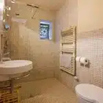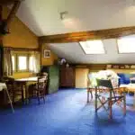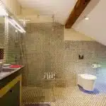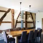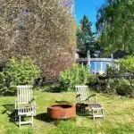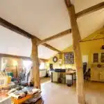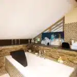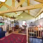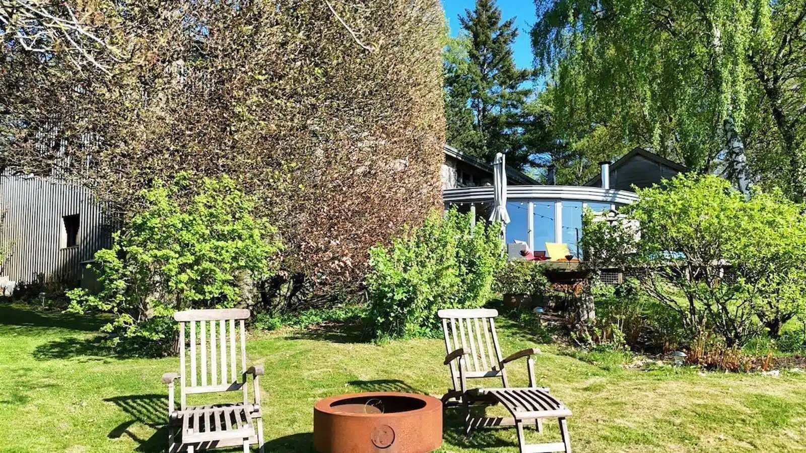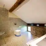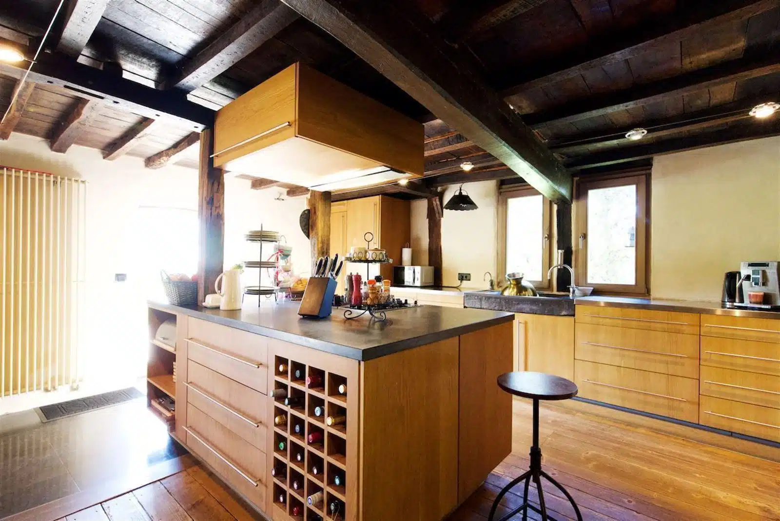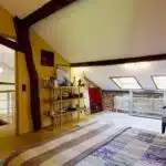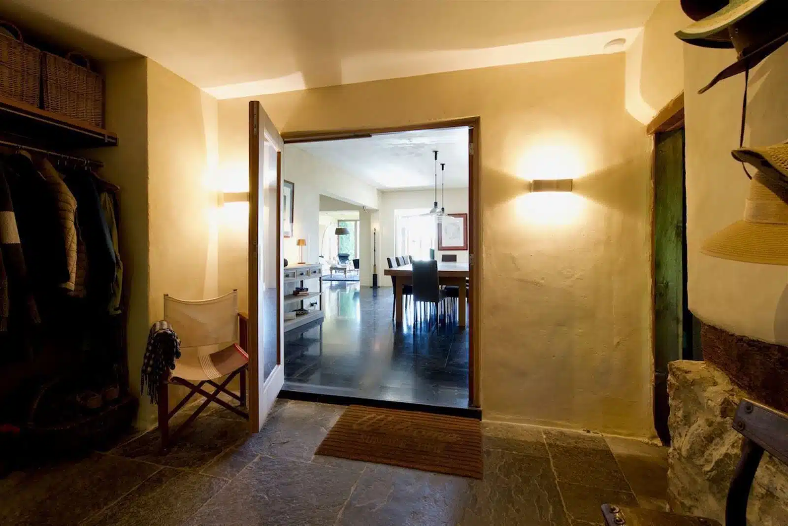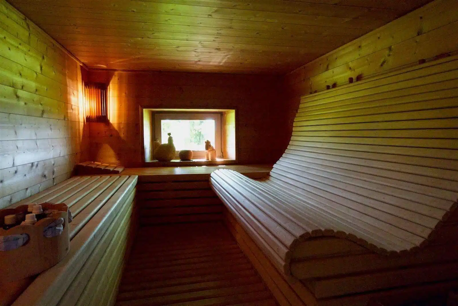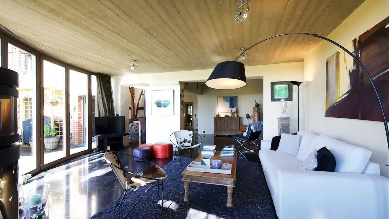 L’habitation comprend de très agréables pièces de vie : grand et lumineux salon, salle à manger, cuisine équipée, petit salon, sauna, 5 chambres dont une avec sauna, 5 salles de bains et également un vaste bureau et un grand atelier/ pièce polyvalente.