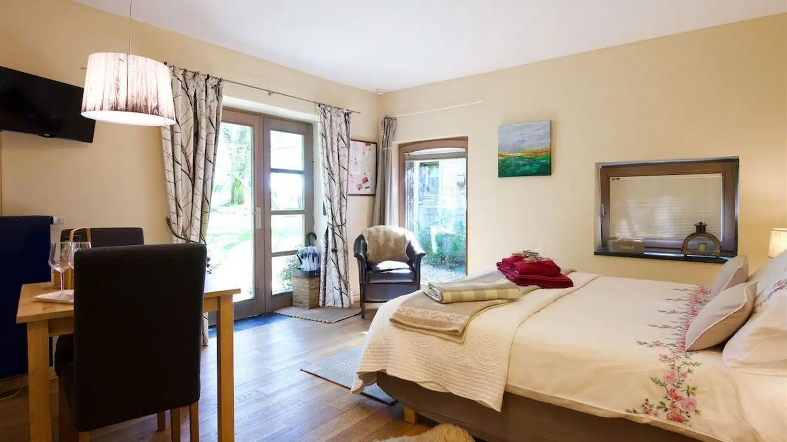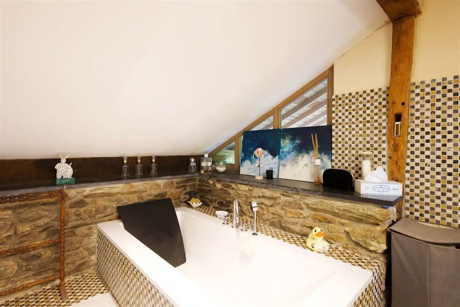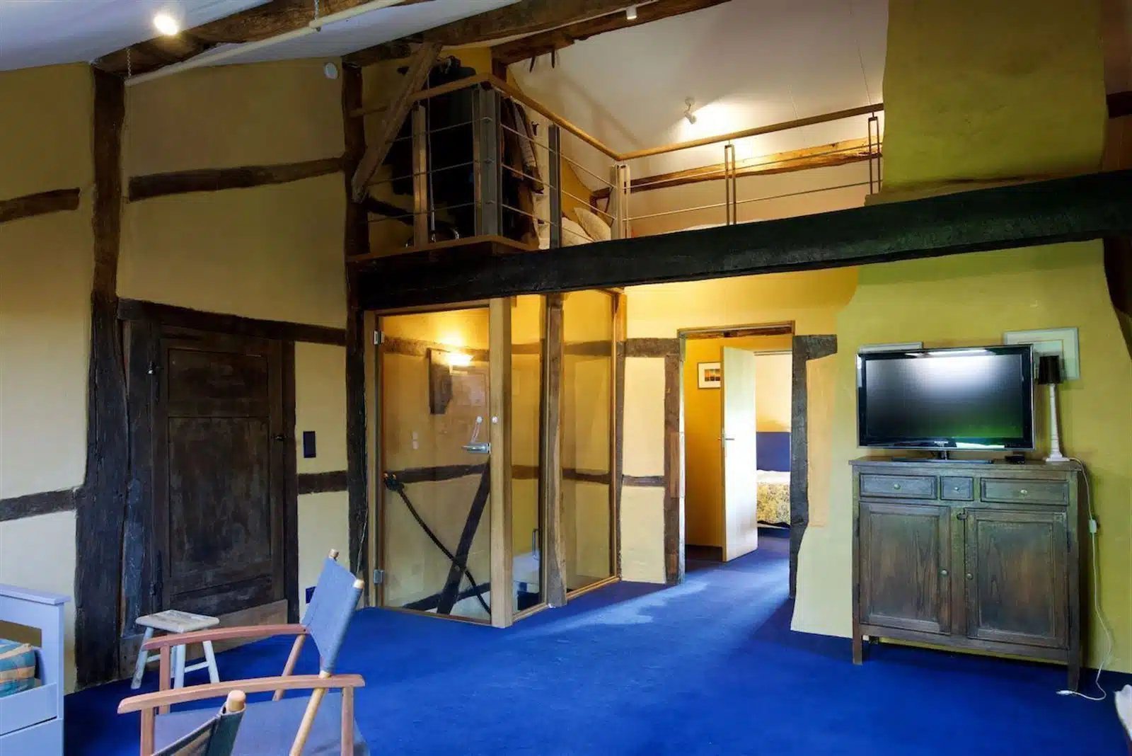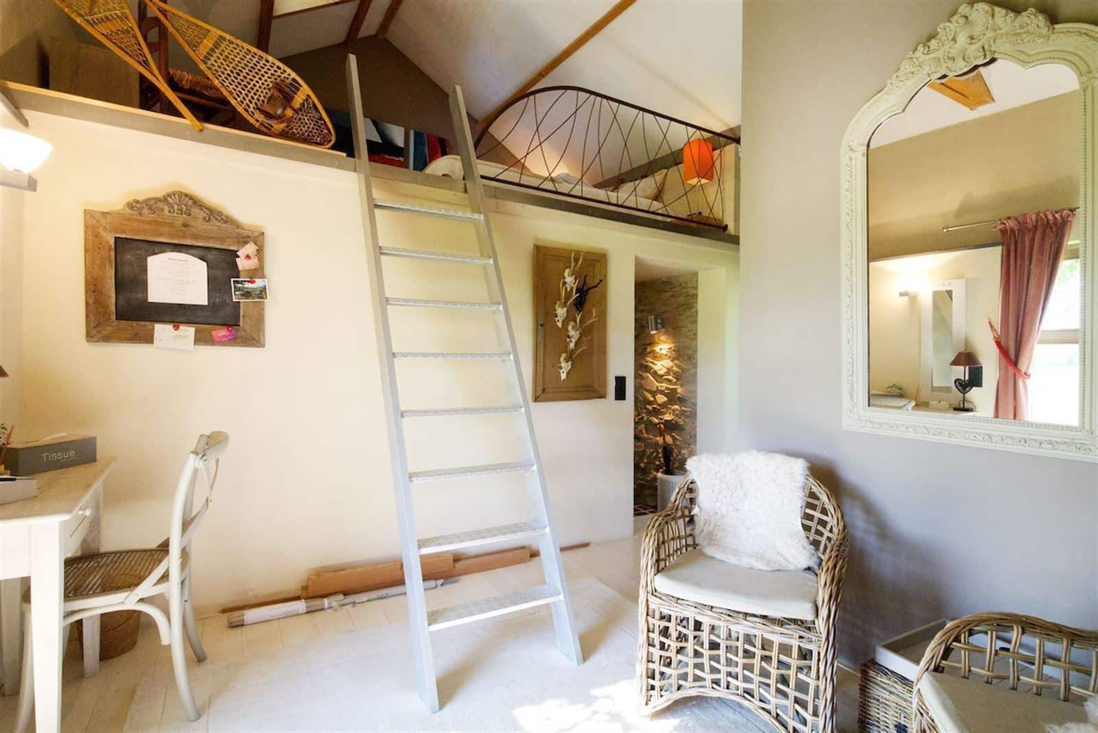 Elle est composée d’une ancienne ferme rénovée avec beaucoup de soins et des matériaux de qualité, de 2 studios indépendants et d’un bâtiment abritant un spacieux atelier et 2 garages.