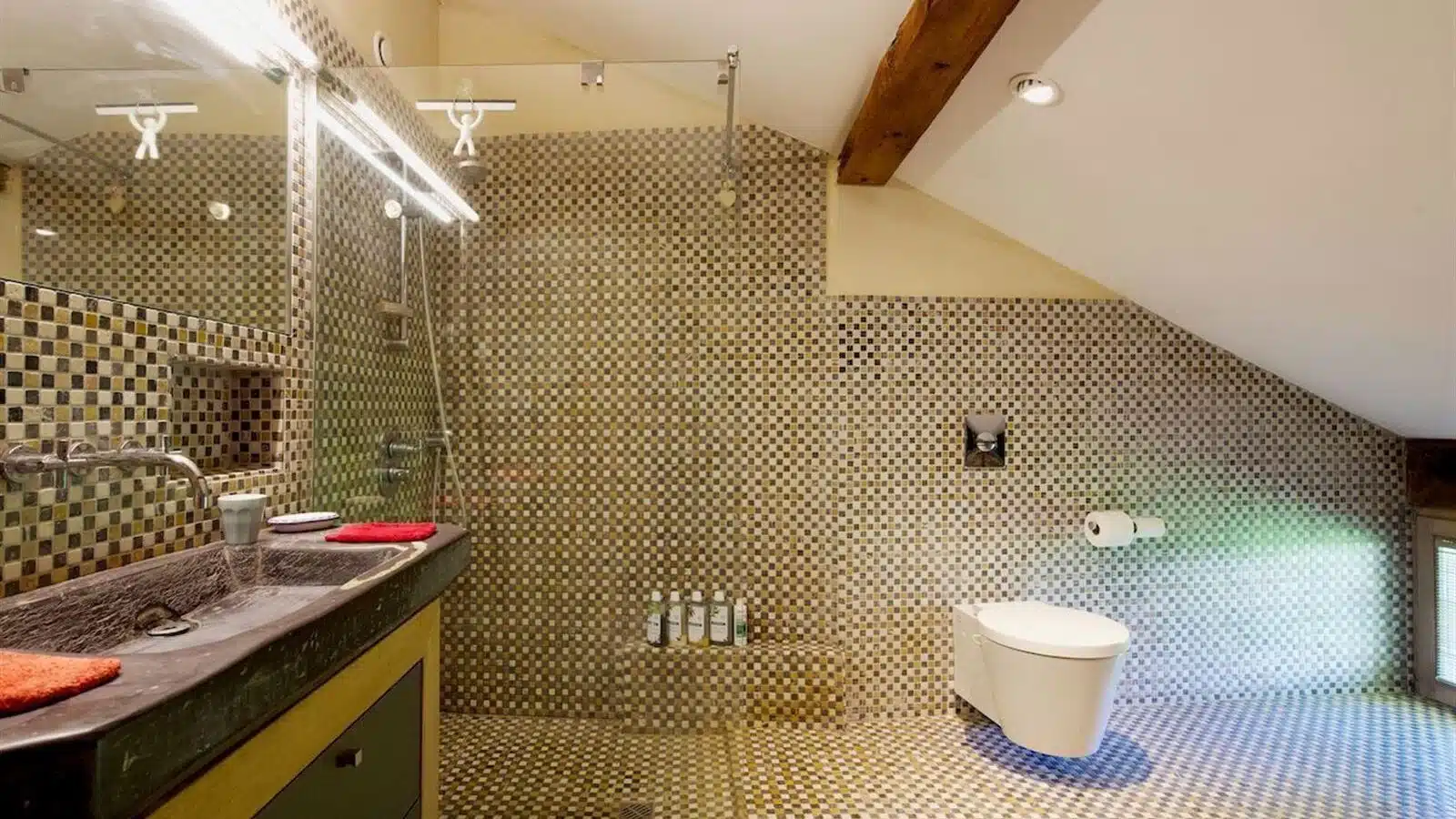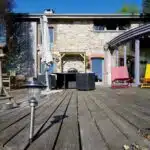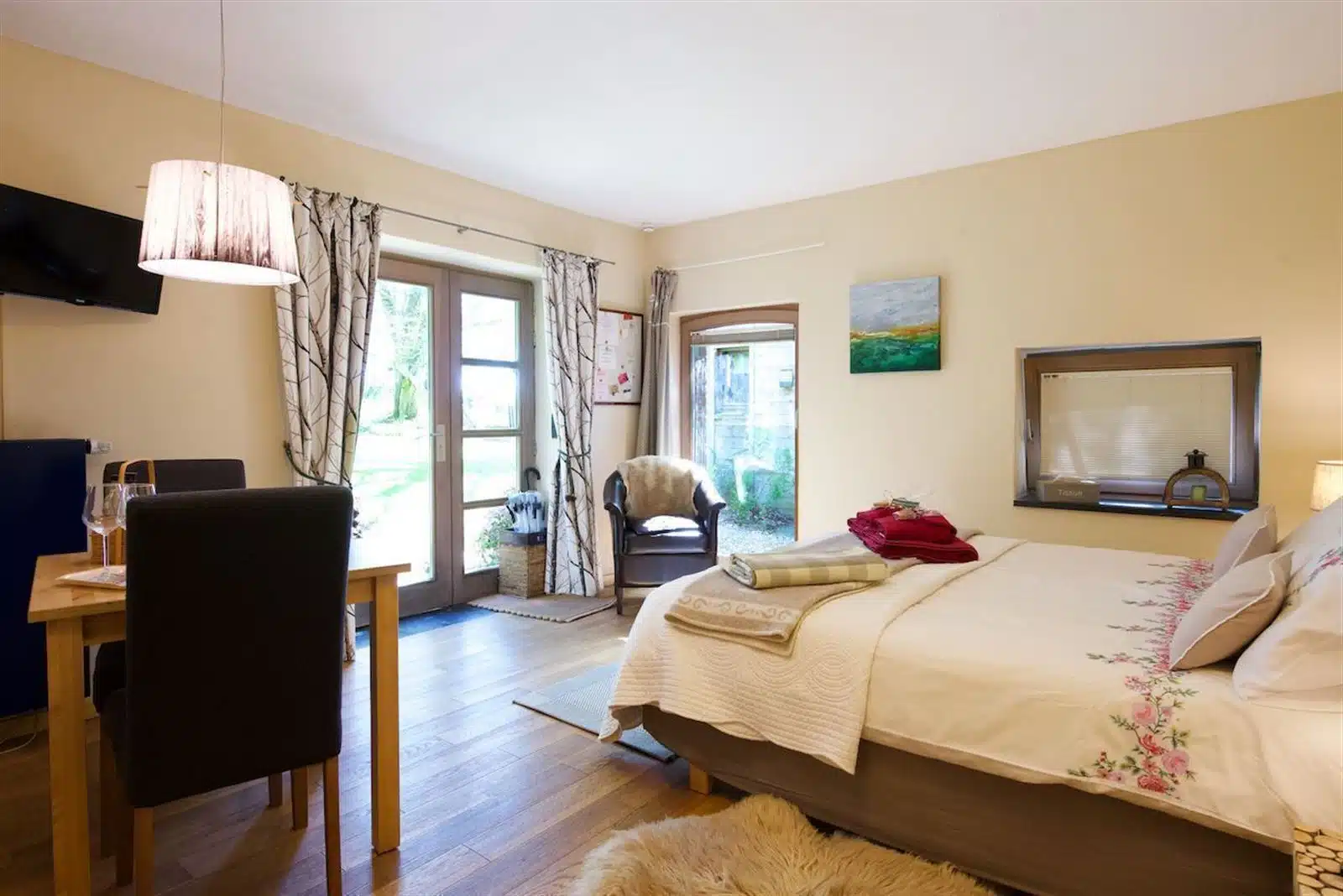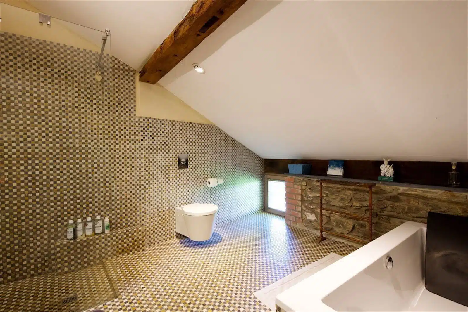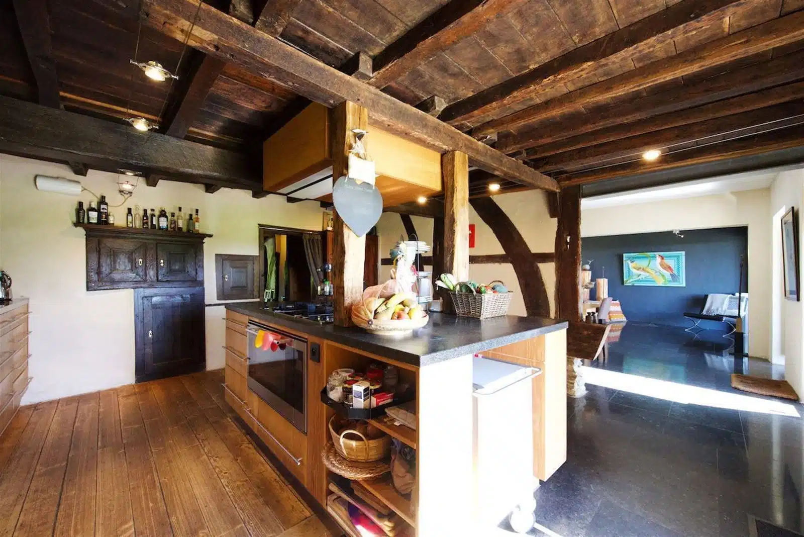 Elle est composée d’une ancienne ferme rénovée avec beaucoup de soins et des matériaux de qualité, de 2 studios indépendants et d’un bâtiment abritant un spacieux atelier et 2 garages.