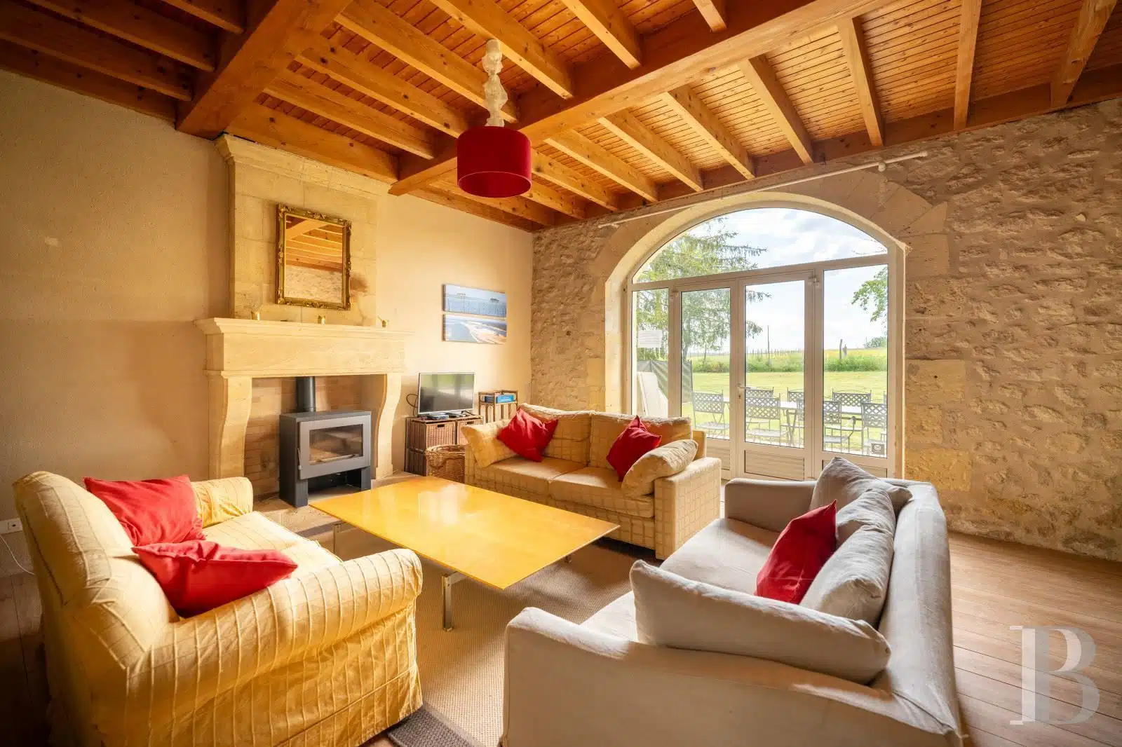 A 50 min de Bordeaux, dans l'Entre-deux-Mers, un château du 18e s., ses gîtes, sa salle de réception et ses piscines sur 3 ha.