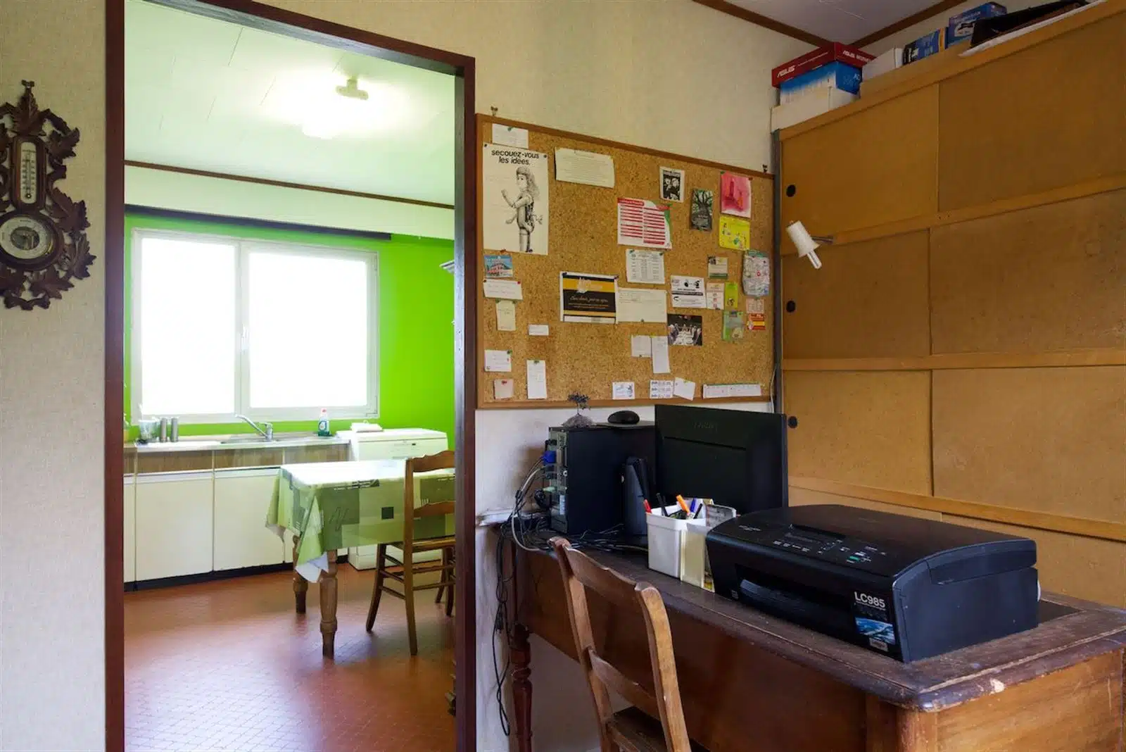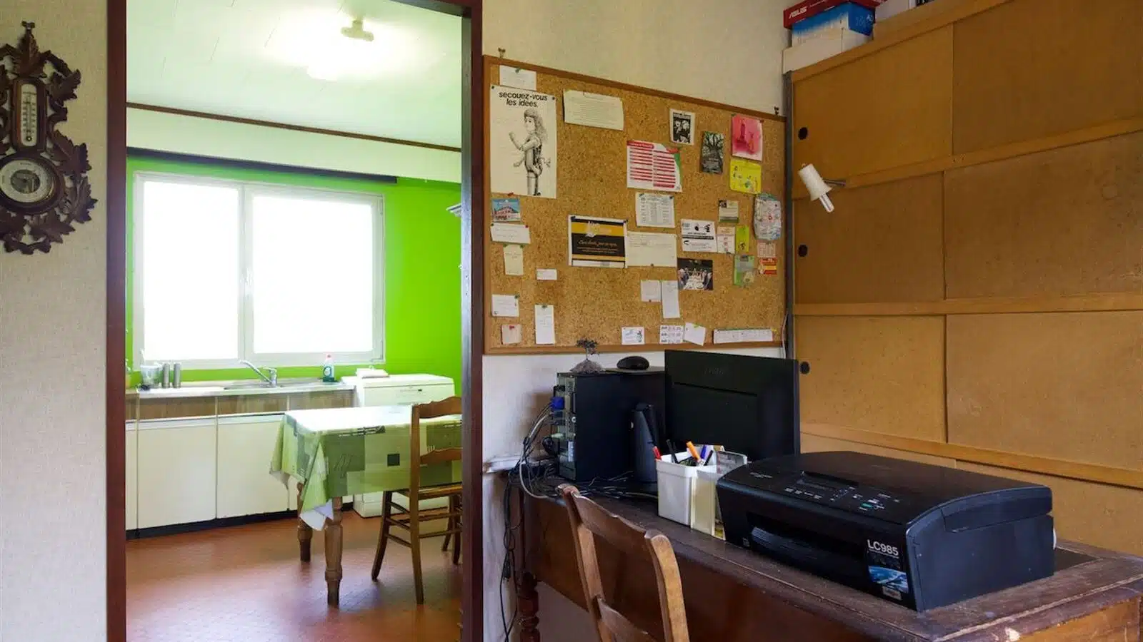 L’habitation offre de lumineuses pièces de vie et est composée de 3 chambres, 1 salle de bains, séjour avec insert bois et 2 garages.