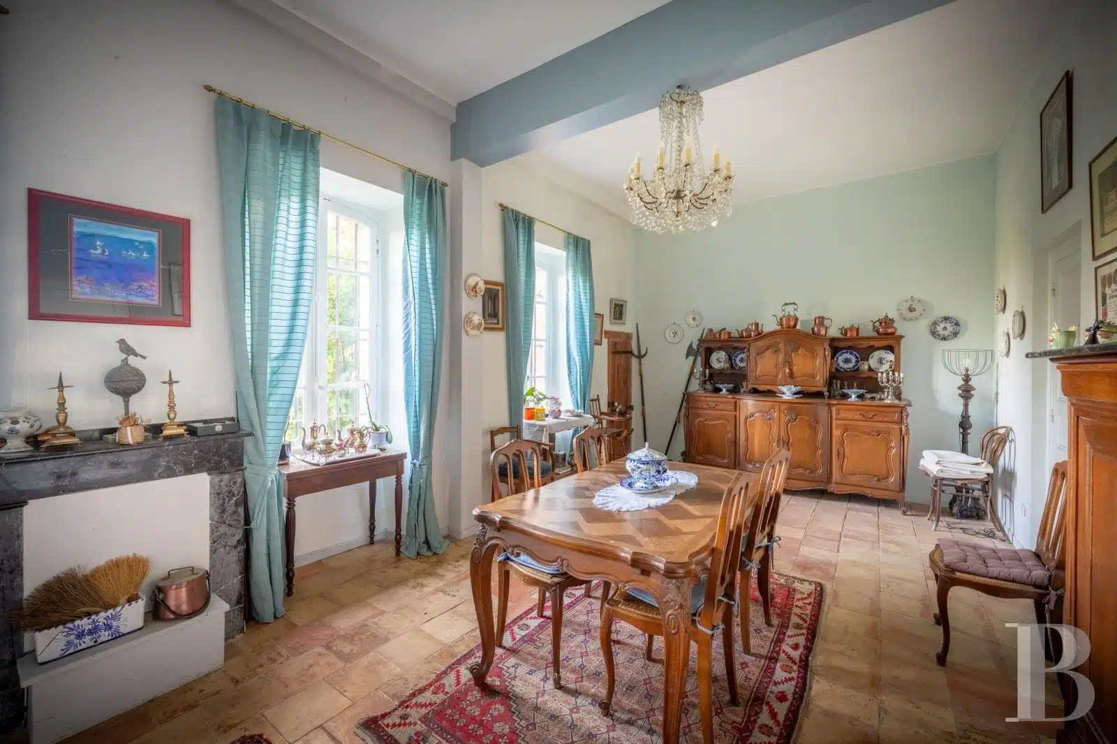 Les dépendances proches comprennent le mur arrière d'un bâtiment détruit en 1942, une ancienne écurie et le logement de gardien. Plus loin, une ancienne chapelle sous laquelle se trouve une cave, devenue four à pain surmonté d'un pigeonnier, attire l'attention par son enduit soigné, ses chaînages d'angle en pierre calcaire et son élégante génoise à trois rangs de tuile. Une orangerie et des hangars complètent le domaine, témoignant de son passé agricole.